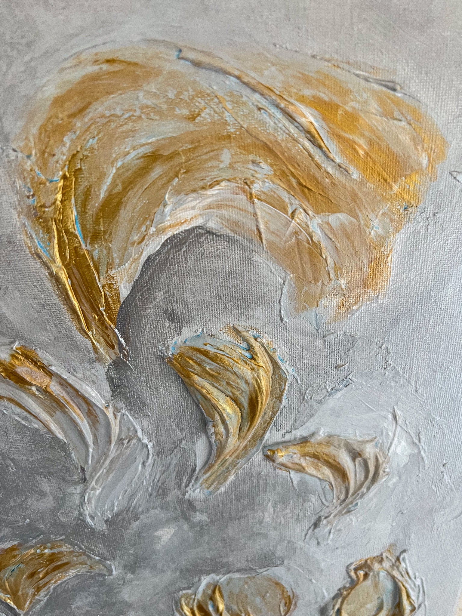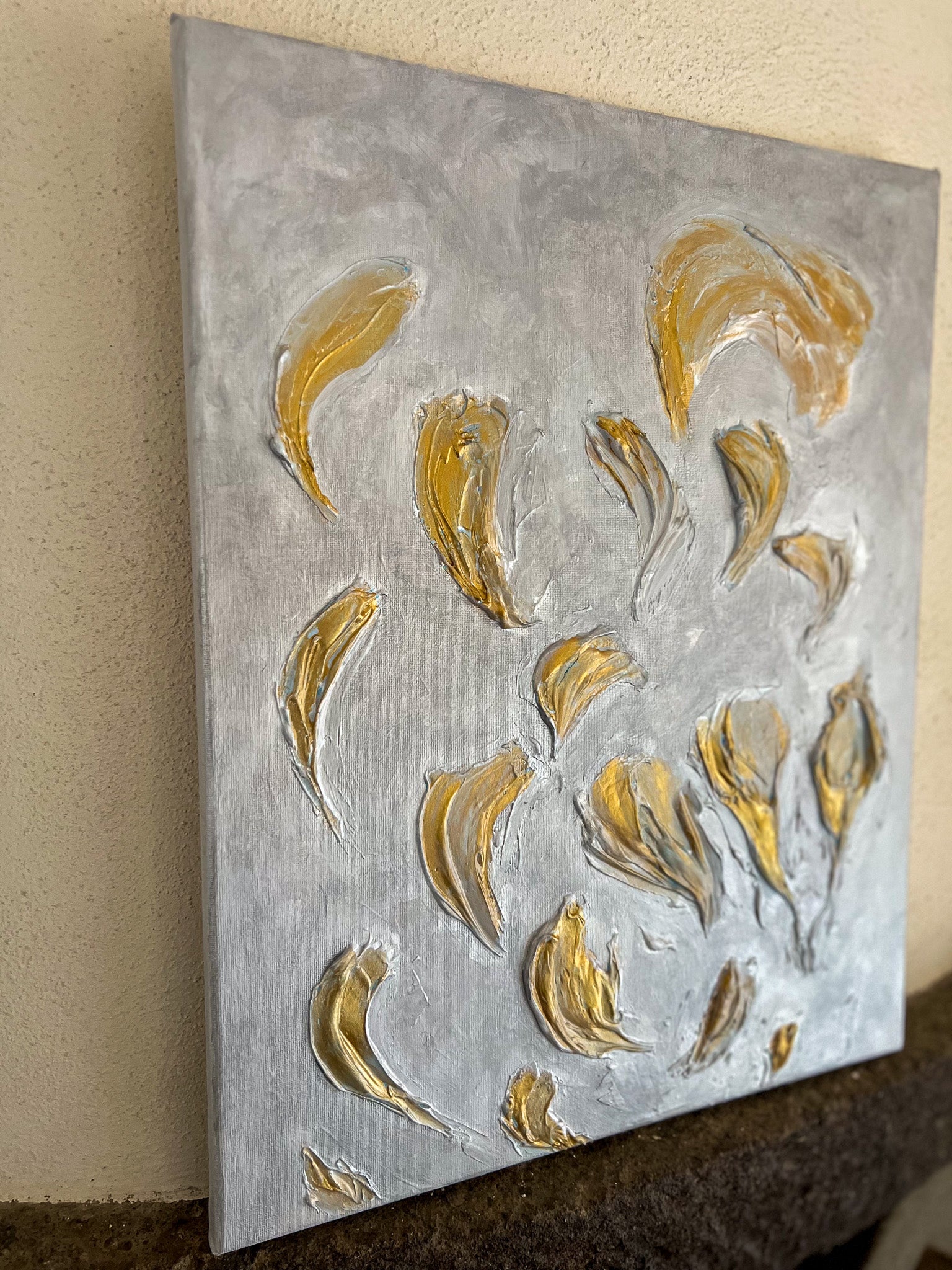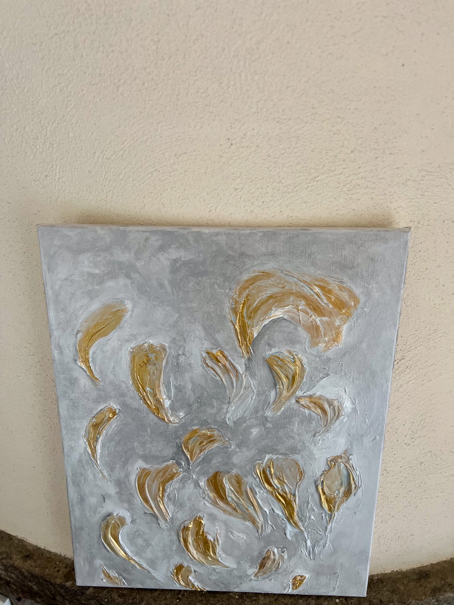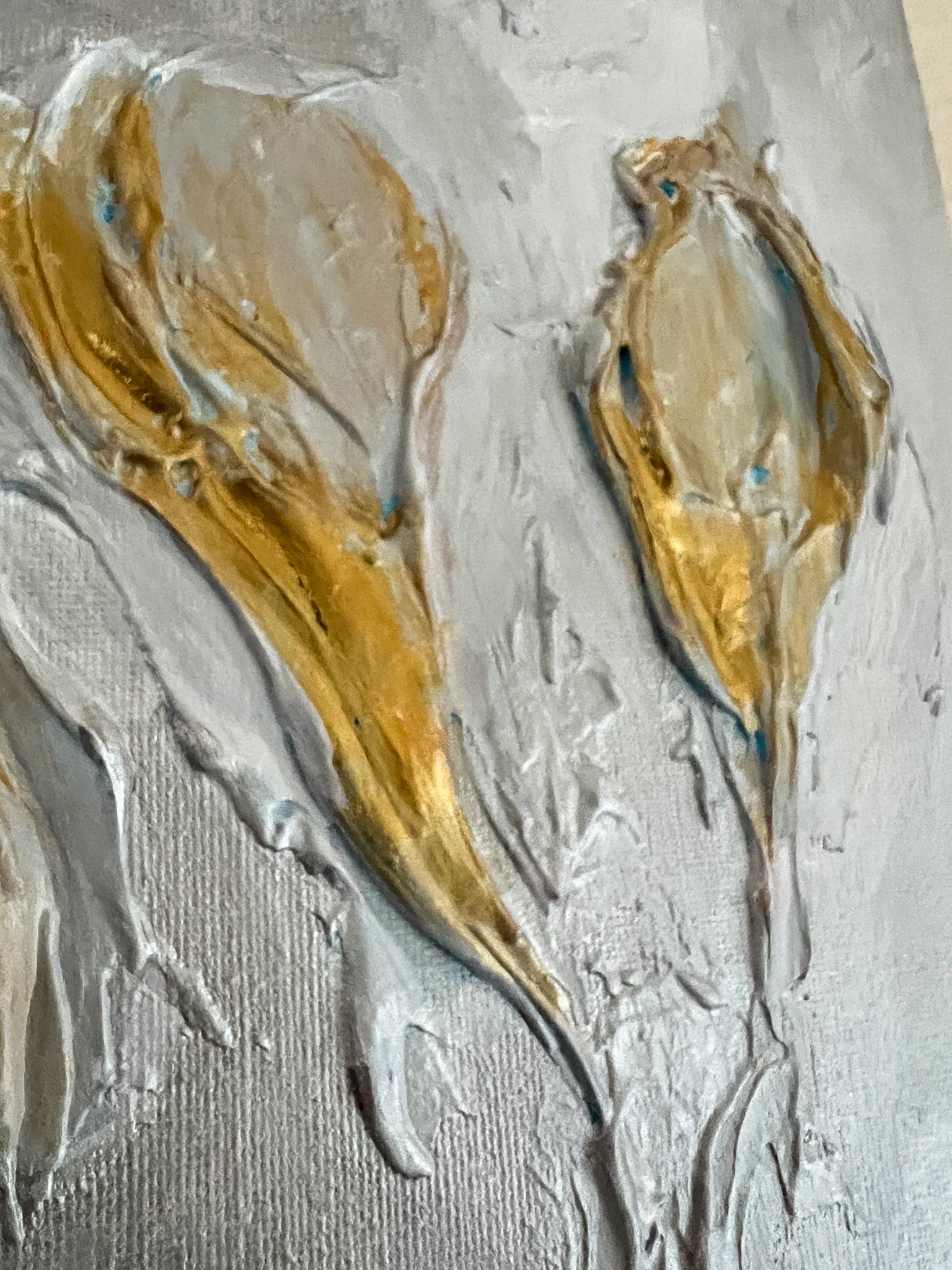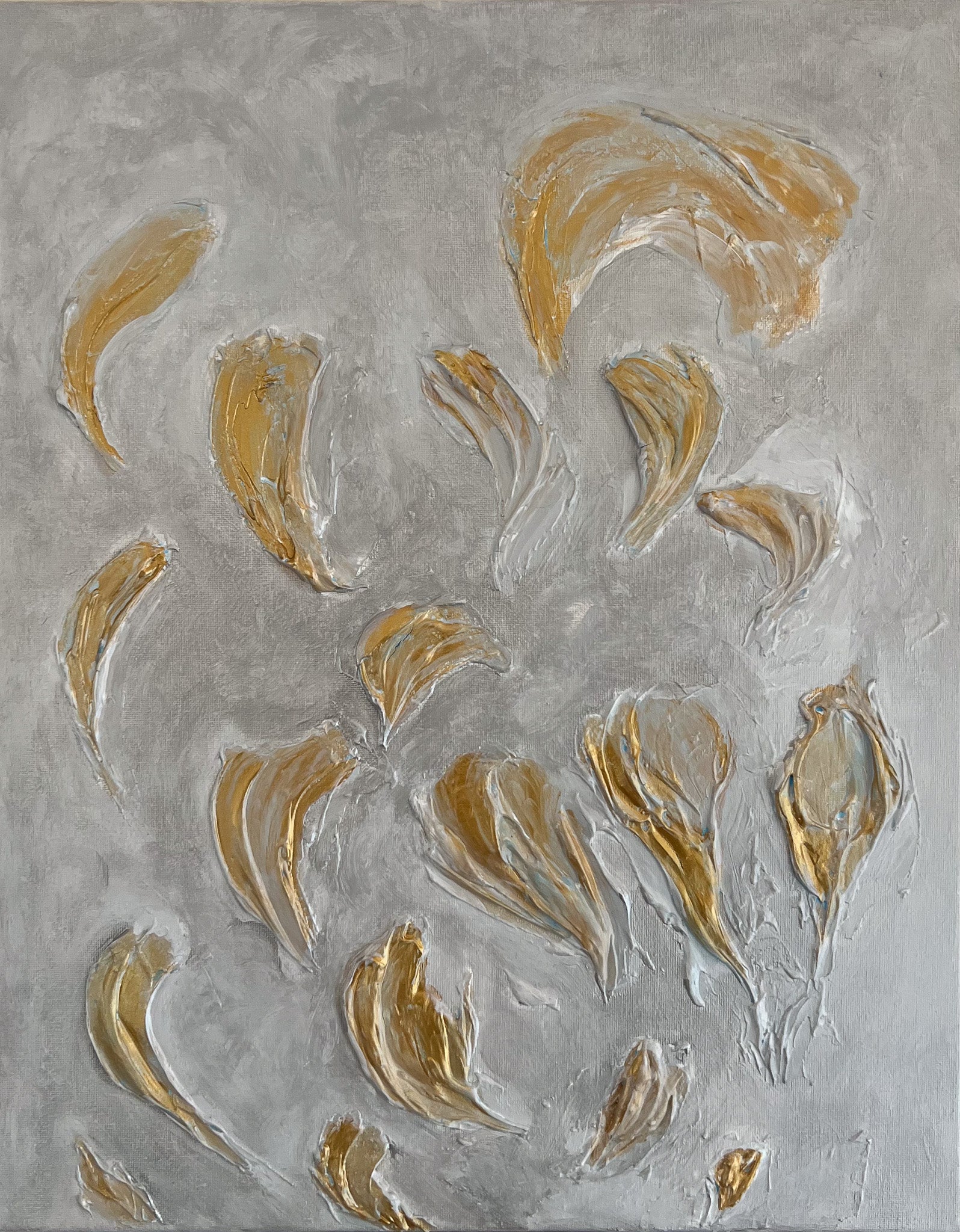 In this painting, I've explored the elegance of calla lilies through abstract brushstrokes, blending minimalism with a touch of expressionism and impressionism. Each stroke is crafted with acrylics to convey the delicate, almost ethereal quality of these flowers. The muted color palette evokes a sense of calm and purity, inviting reflection and tranquility into any space. This piece celebrates the subtle beauty and gentle flow of nature's forms.
