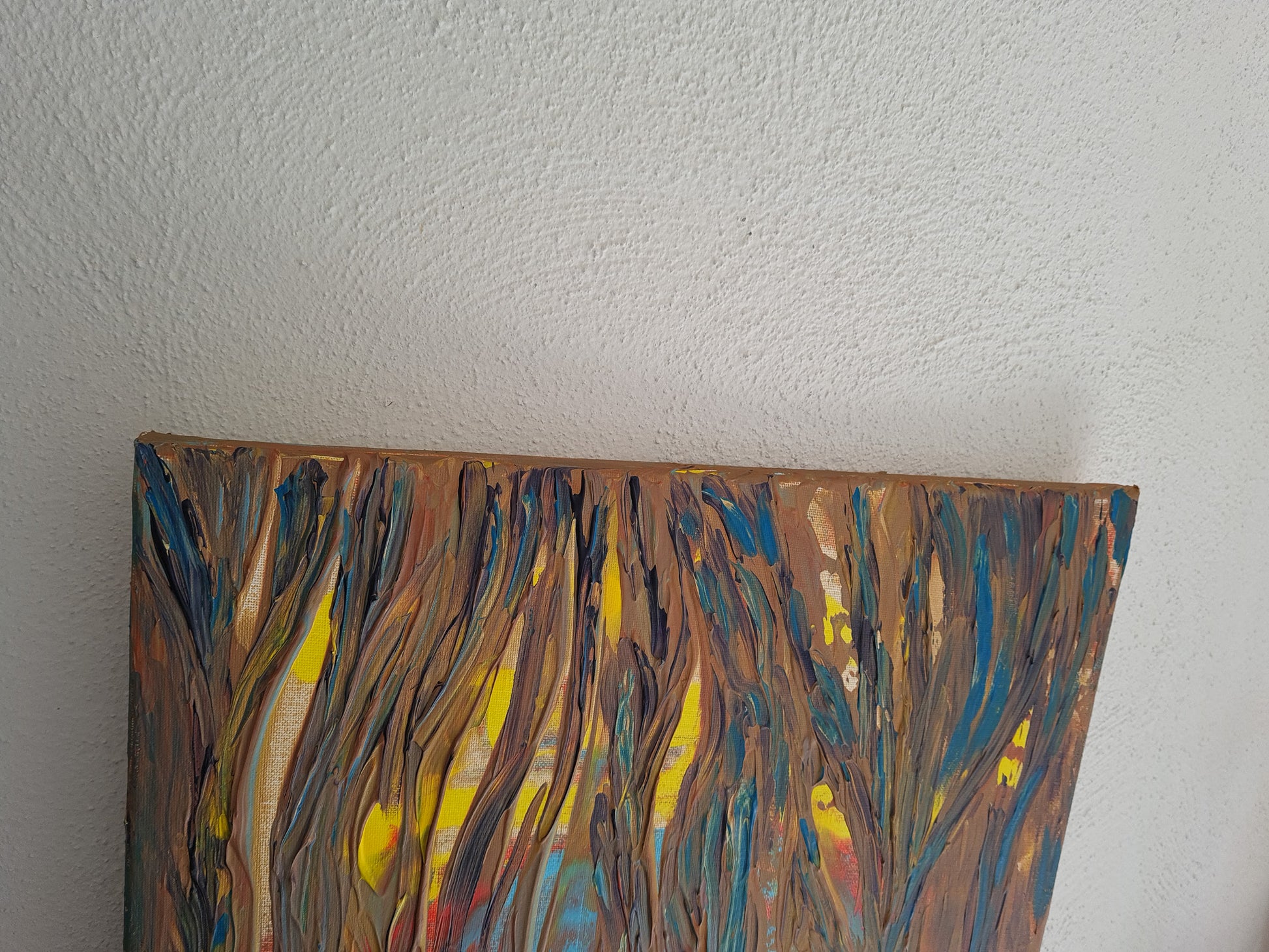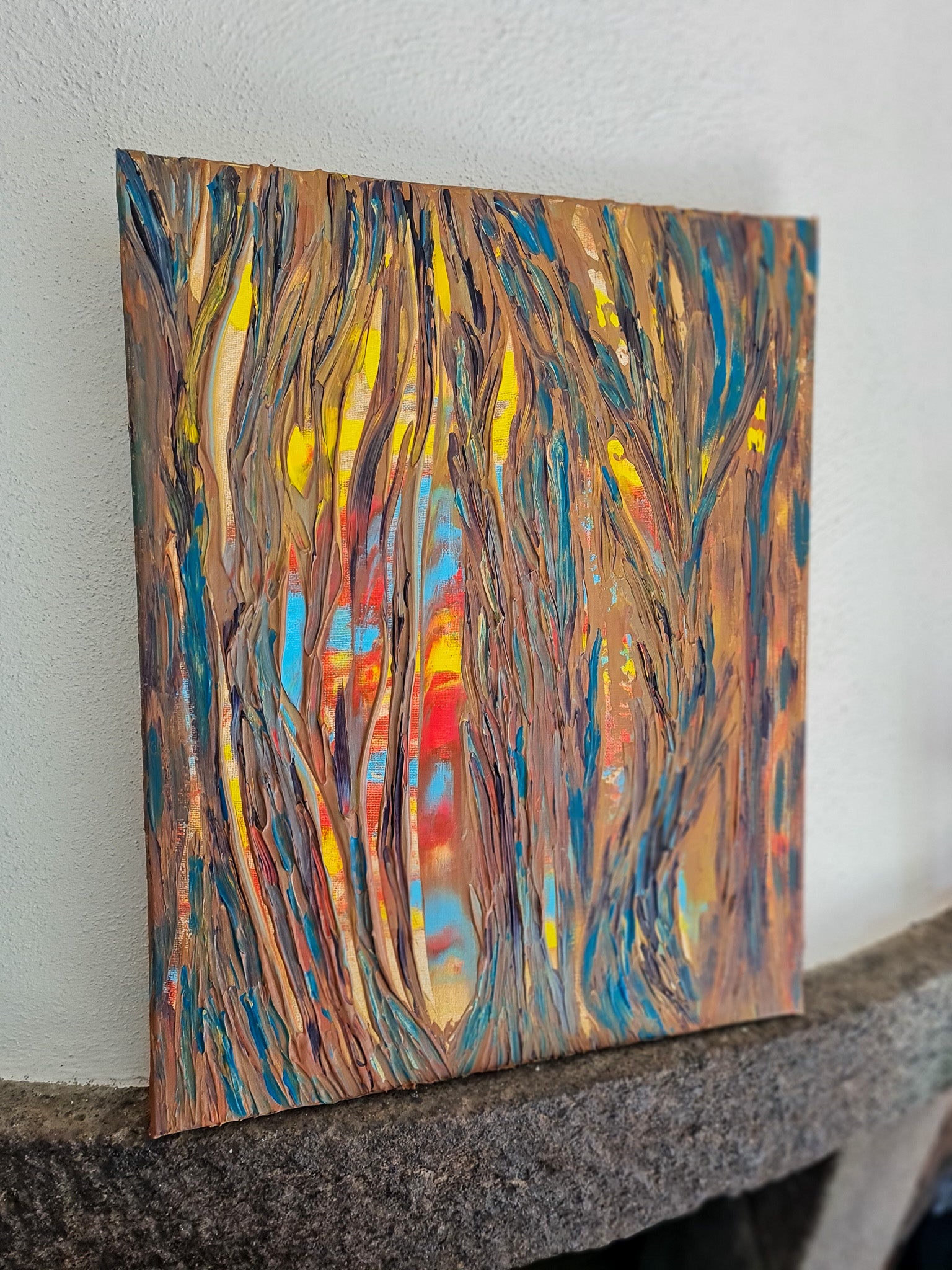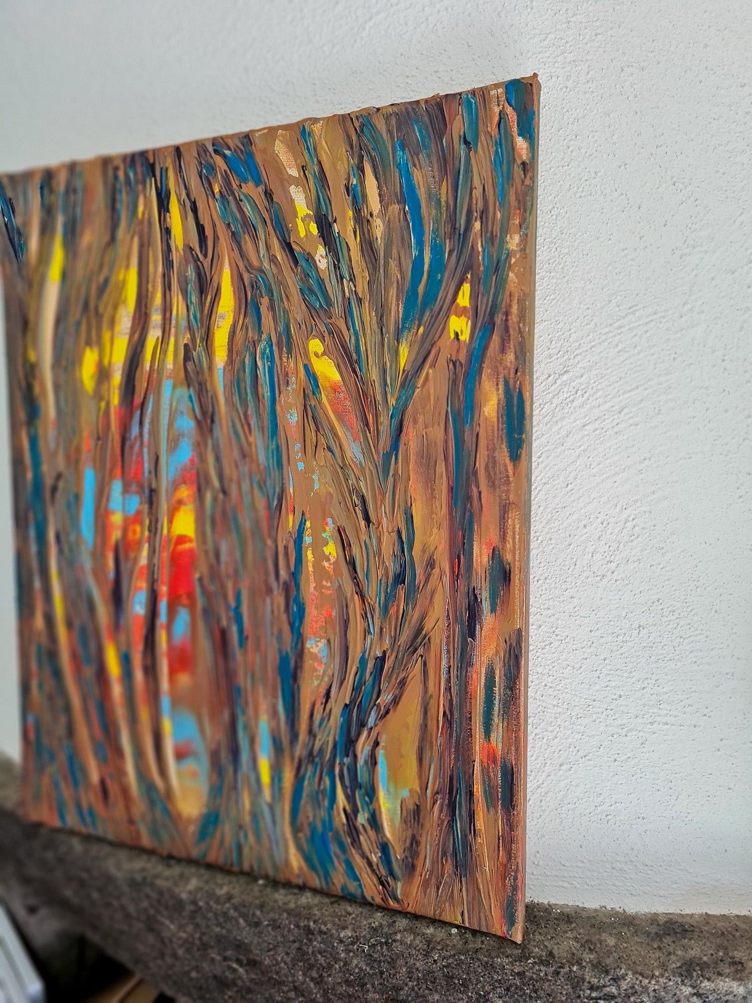 In creating this piece, I poured my fascination with nature's enigmatic beauty and its profound mystery into every stroke. The vibrant, contrasting colors and dynamic textures aim to evoke a sense of wonder and introspection, reflecting the complex emotions stirred by the wilderness. The artwork invites viewers to look deeper, exploring the intertwining of reality and the surreal—much like stepping into a dream at the edge of the woods. It's designed to bring a lively, thought-provoking presence to any space.