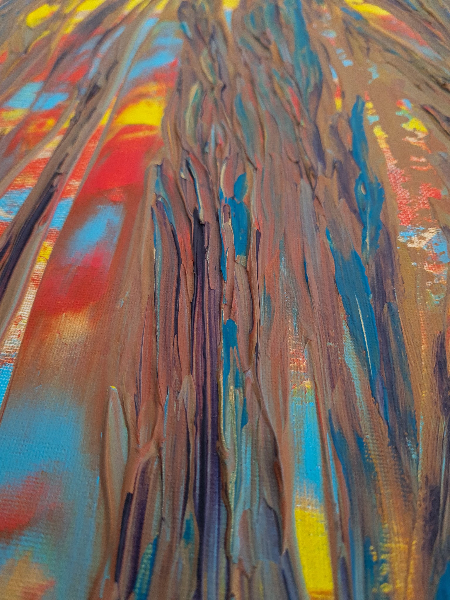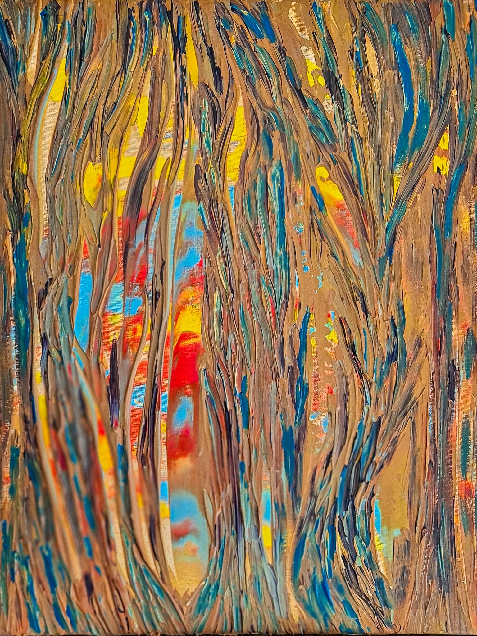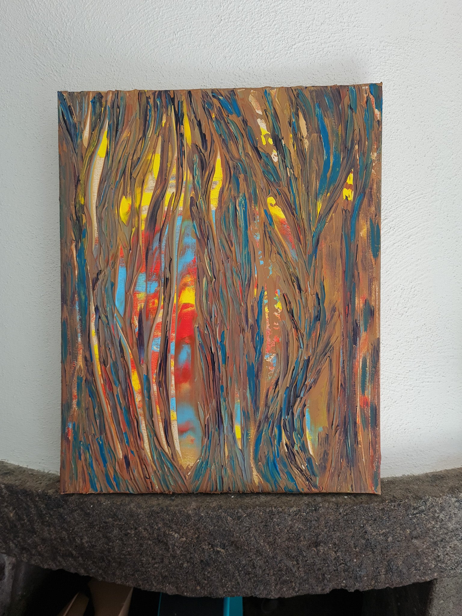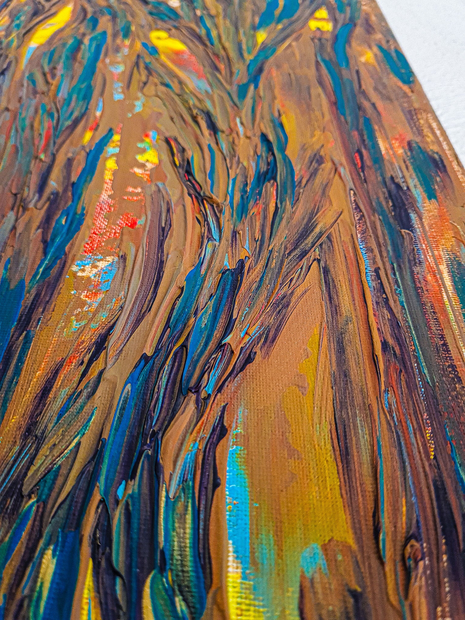 In creating this piece, I poured my fascination with nature's enigmatic beauty and its profound mystery into every stroke. The vibrant, contrasting colors and dynamic textures aim to evoke a sense of wonder and introspection, reflecting the complex emotions stirred by the wilderness. The artwork invites viewers to look deeper, exploring the intertwining of reality and the surreal—much like stepping into a dream at the edge of the woods. It's designed to bring a lively, thought-provoking presence to any space.