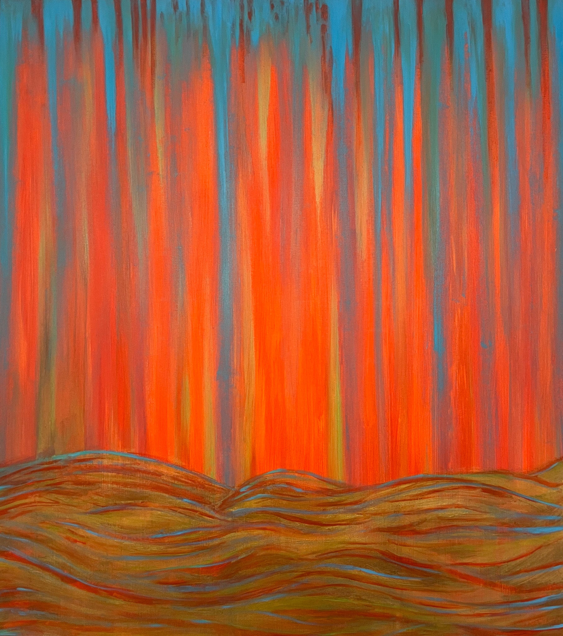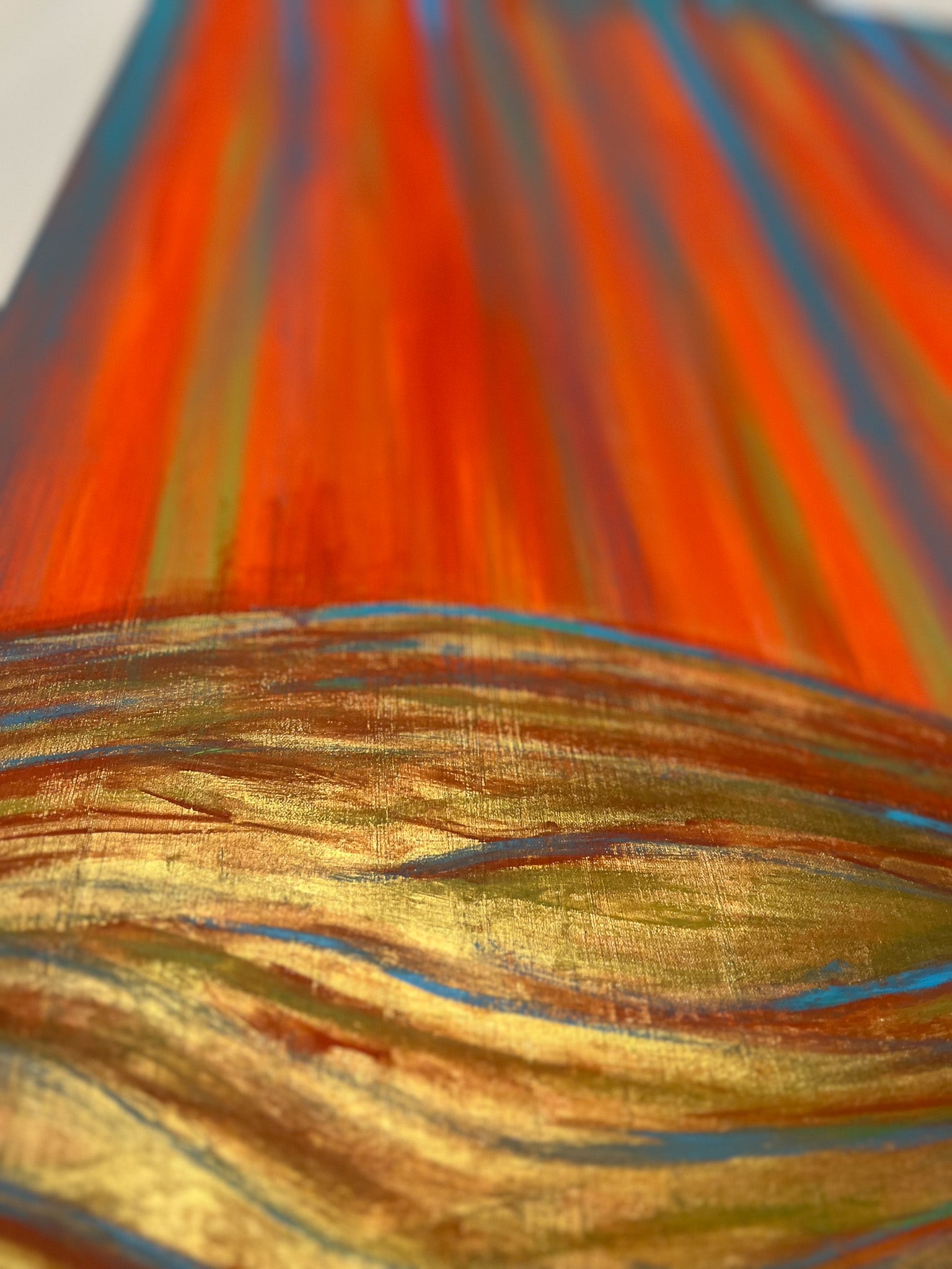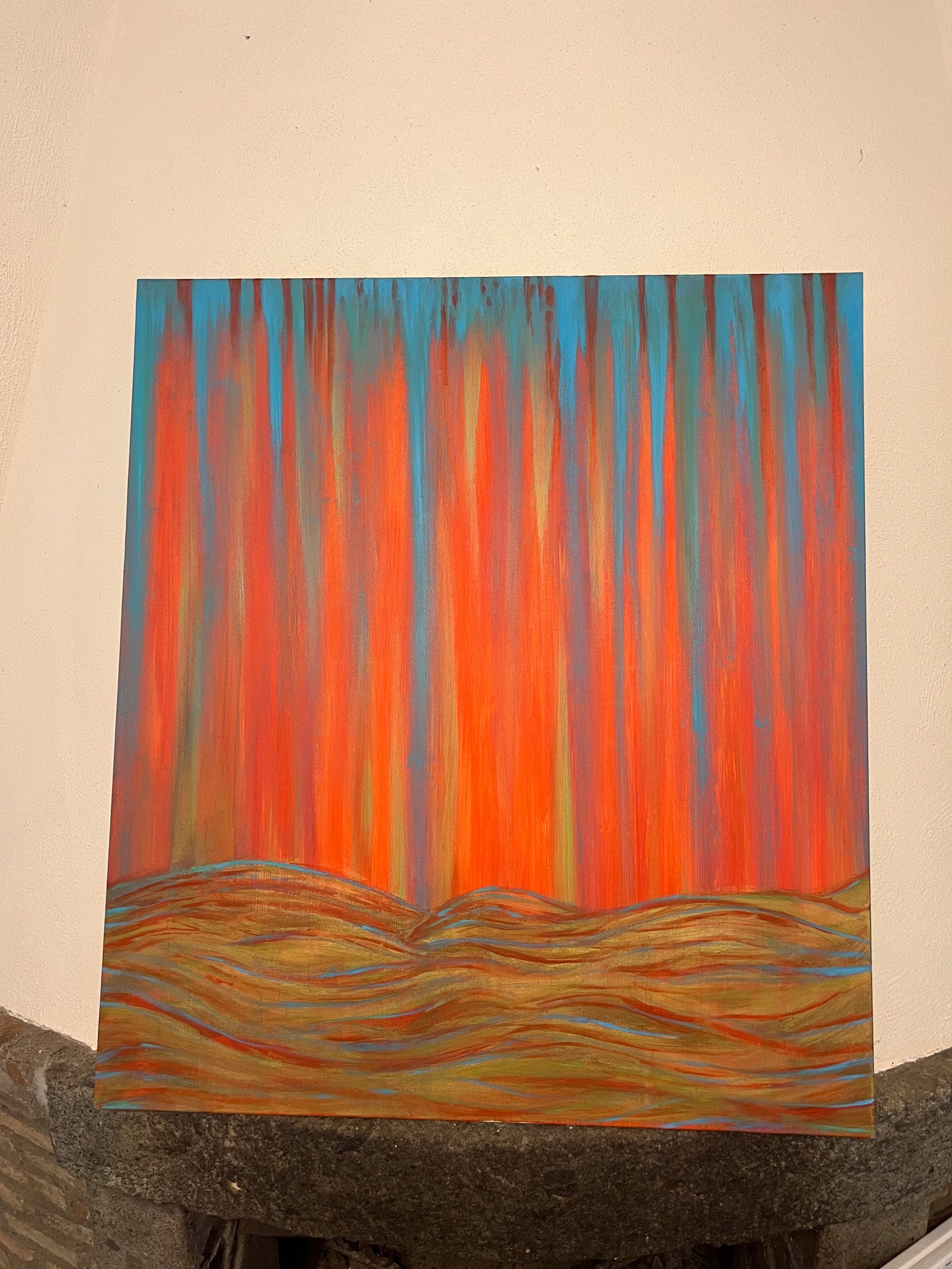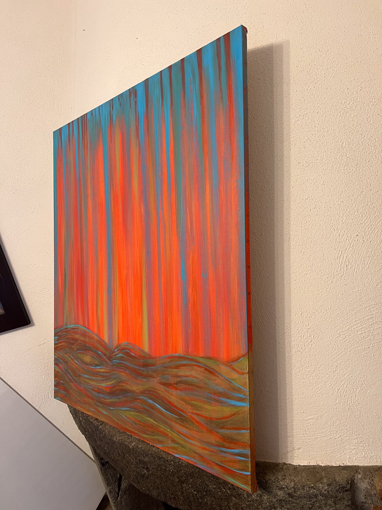 In this piece, I've poured out a symphony of vibrant hues, where the sunset cascades over undulating hills like a warm, melodic wave. It's an abstraction of nature's bliss, a dance of expressionism and surrealism that invites viewers to lose themselves in the rhythm of colors. It's not just a painting; it's an energy, alive with emotion, ready to infuse any room with the essence of an everlasting evening glow.