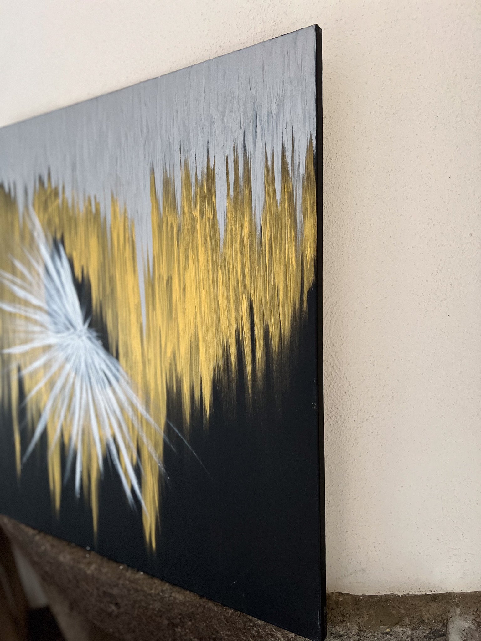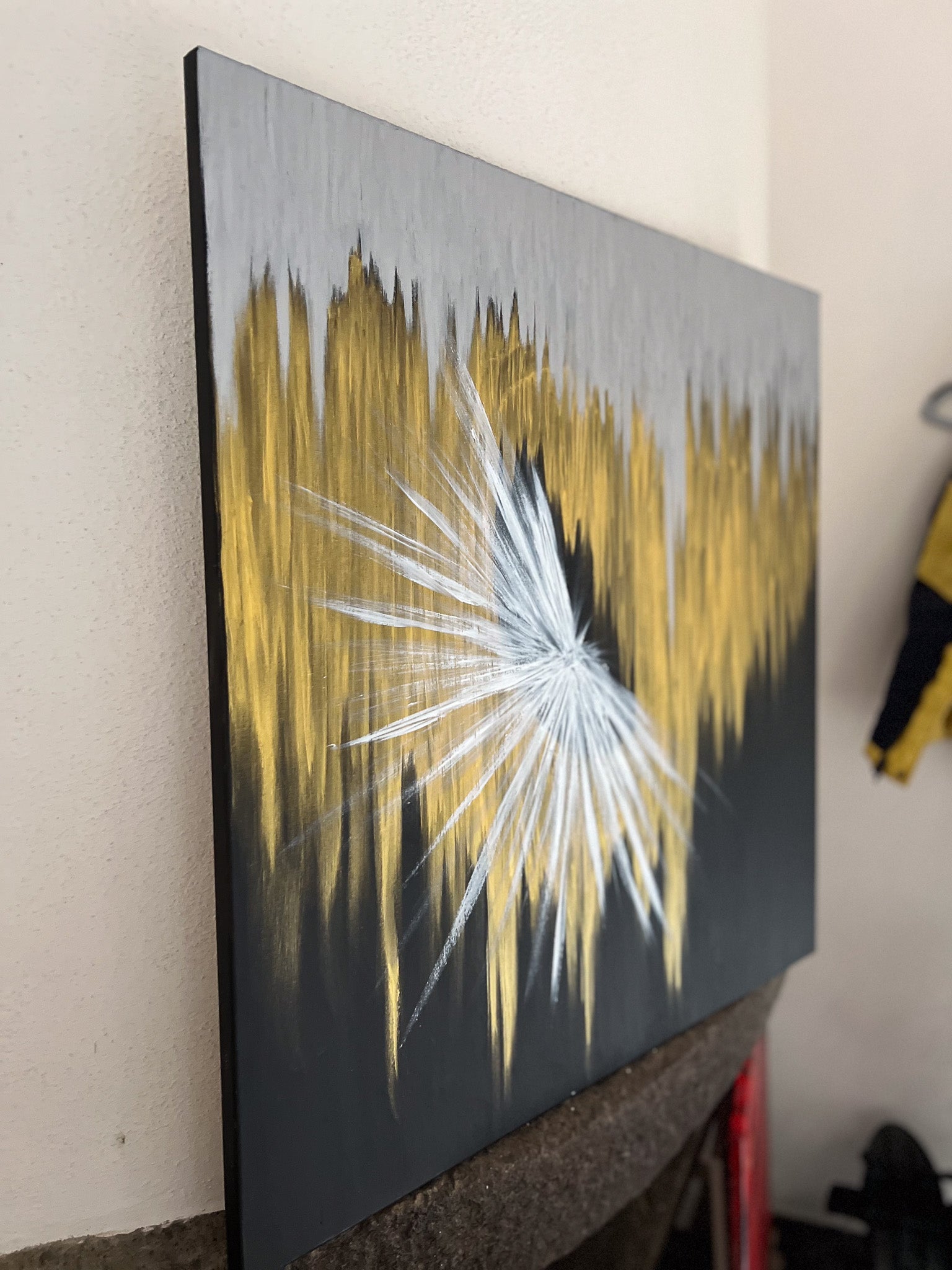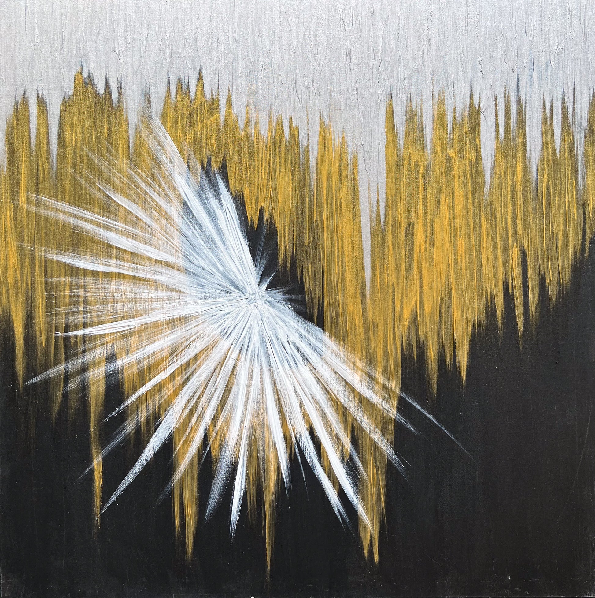 In this creation, I harnessed the vibrancy of acrylics to manifest the intangible—a burst of light into the tangible. My strokes are deliberate, forming geometric harmony, and nurturing a metaphysical essence. As I painted, I envisioned illumination amidst obscurity, an awakening. I instill in you a piece that pulses with dynamic energy, inviting contemplation, and radiating inspiration to invigorate your space with its unmistakable presence.