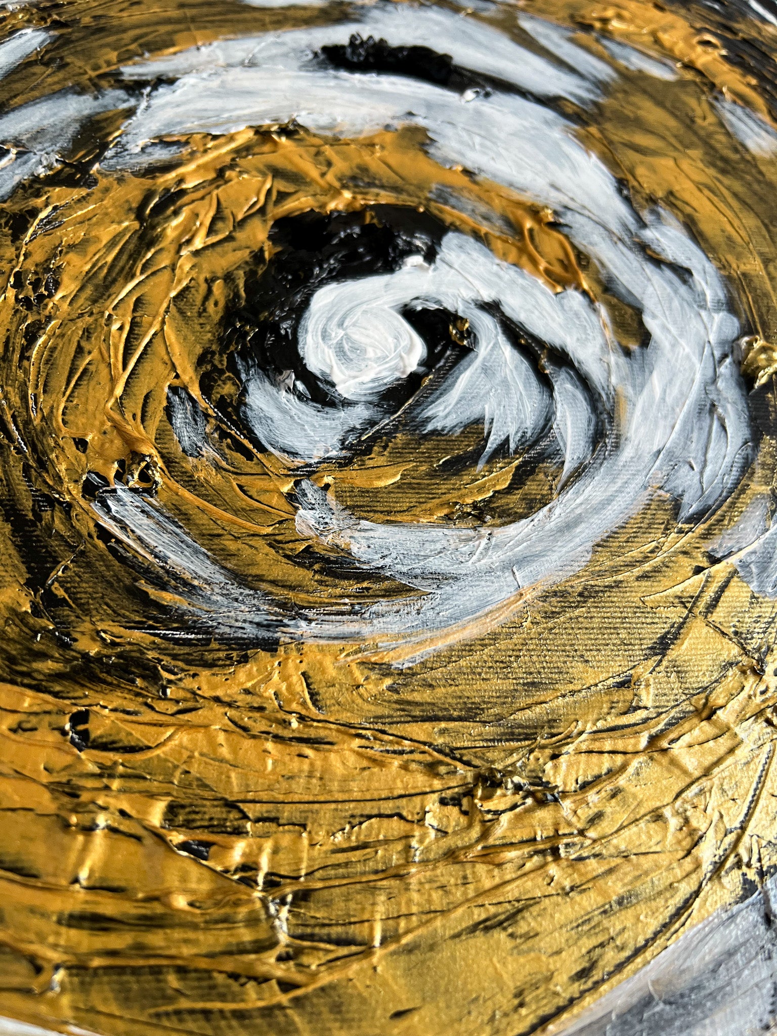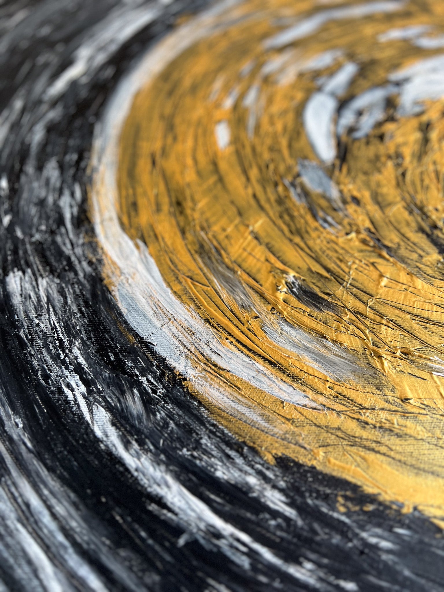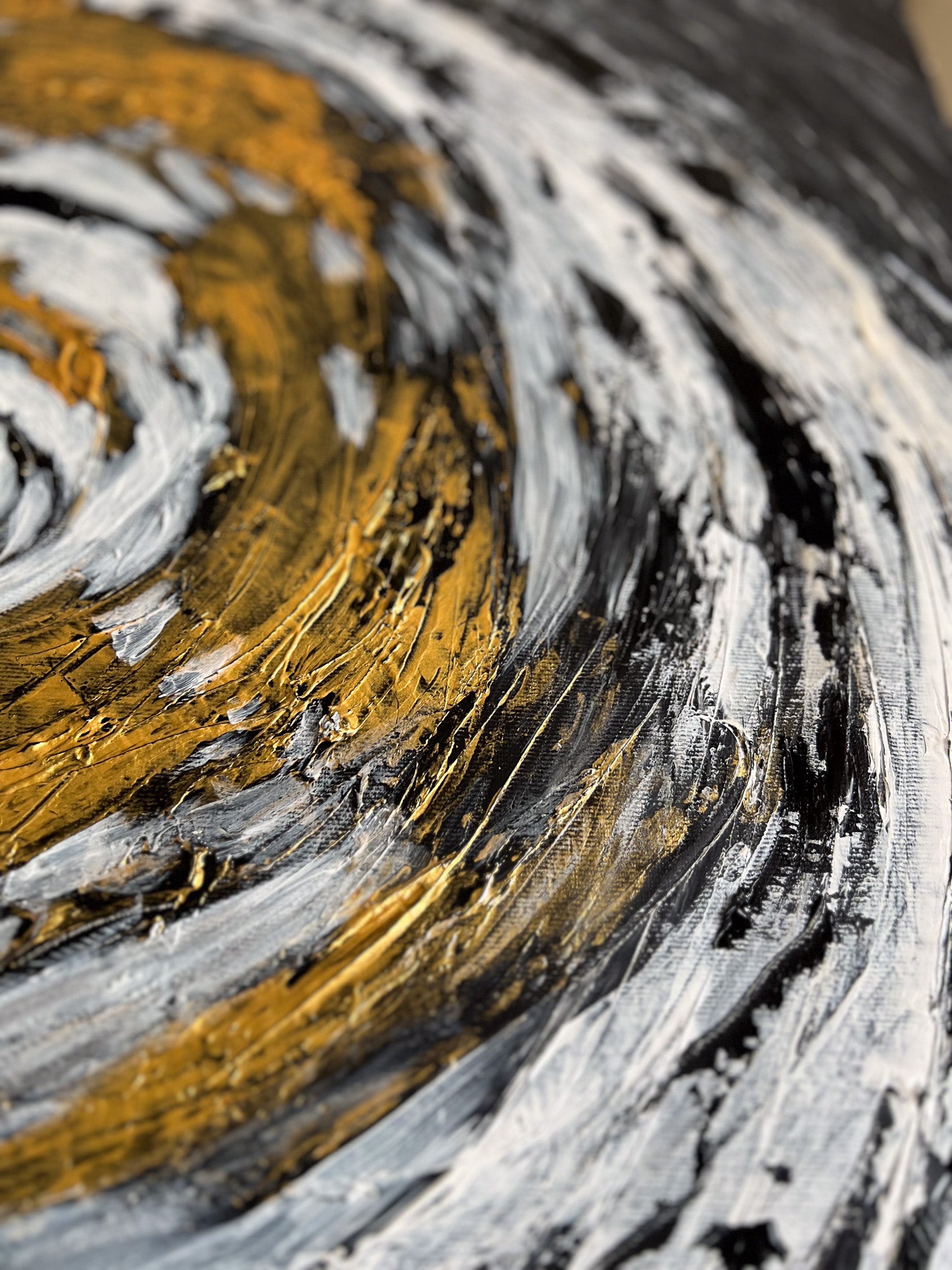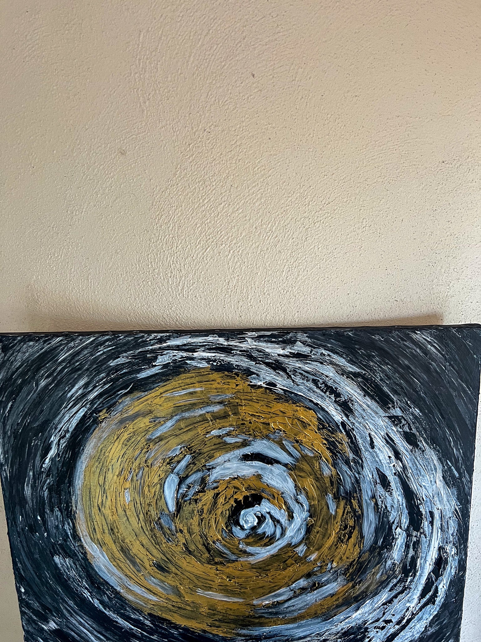 In this stirring piece, I've channeled the cosmic dance of light and darkness using acrylics. My brushstrokes whirl with emotion, carving out a vortex that symbolizes life's relentless spinning. It's a fusion of the abstract and the geometric, where expressionism meets a semblance of the structured world. This painting pulses with an energy that will infuse any space with depth and dynamic movement, a constant reminder of the beautiful chaos that binds us.