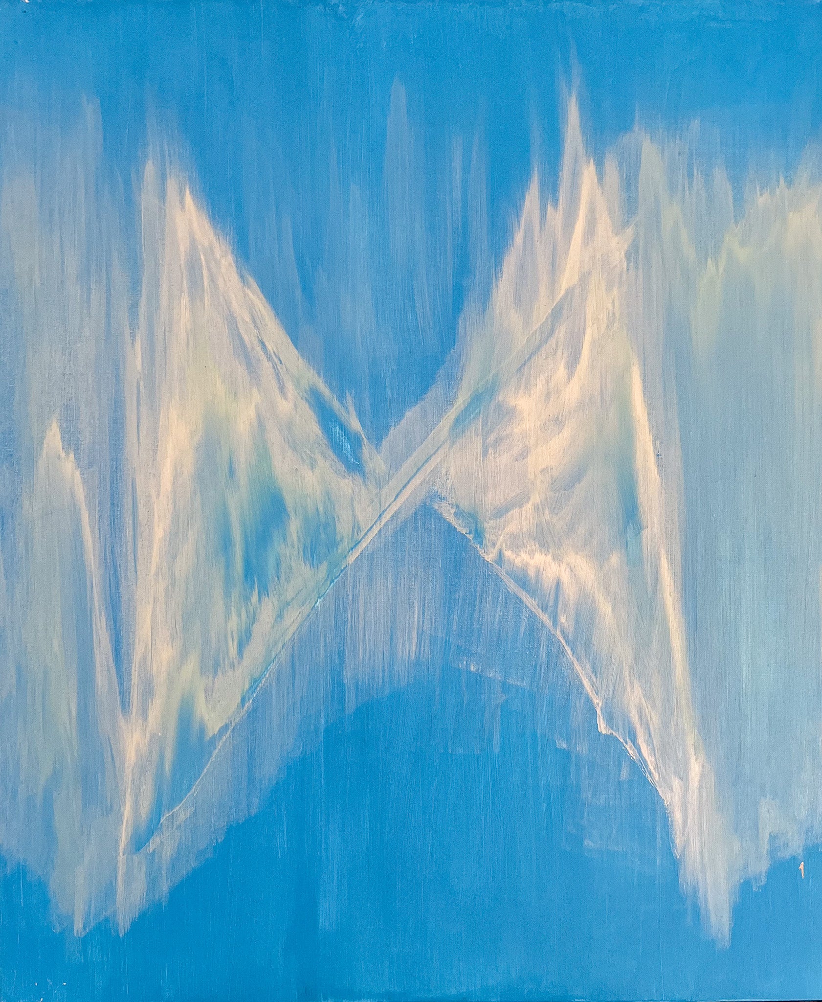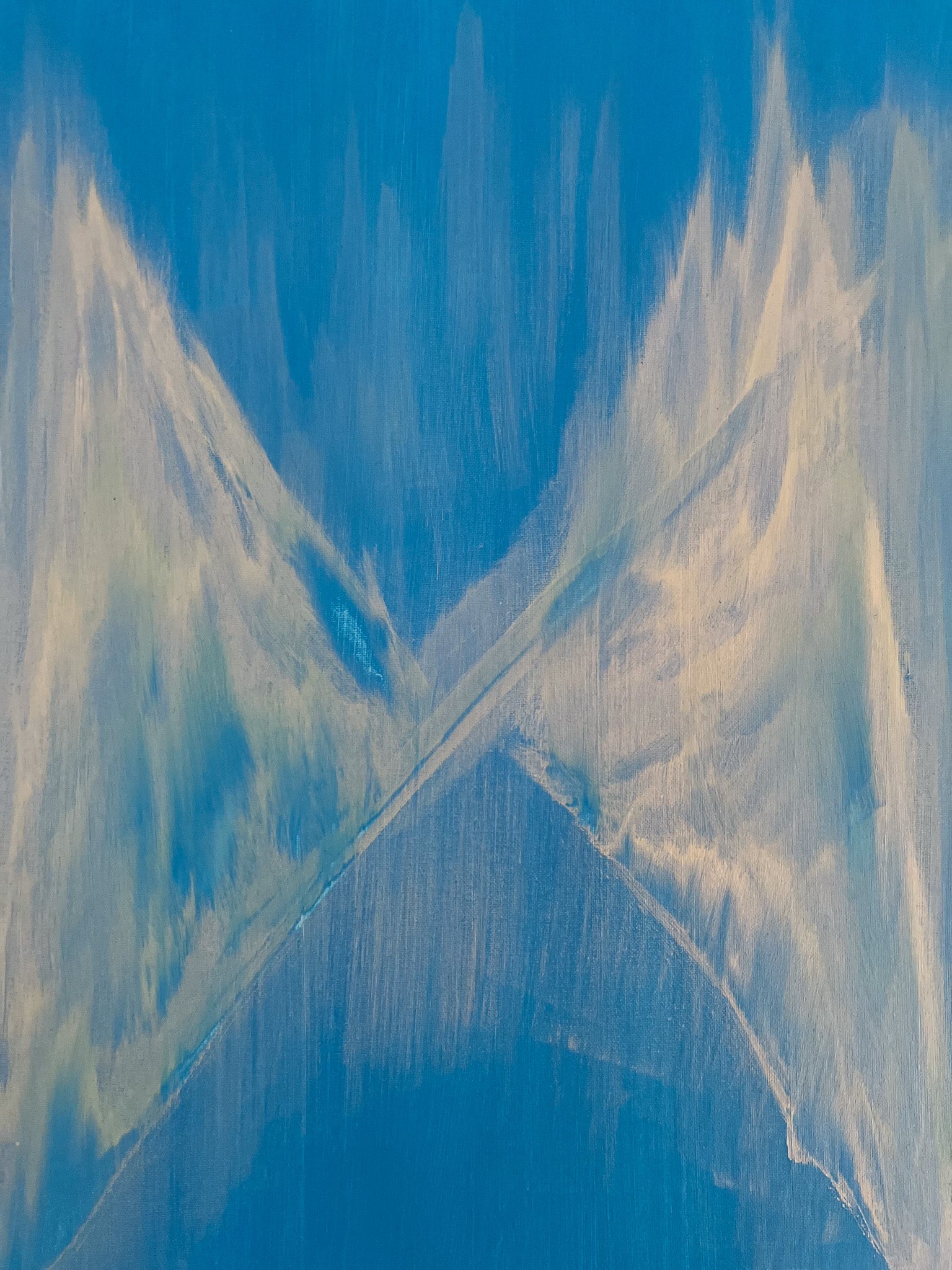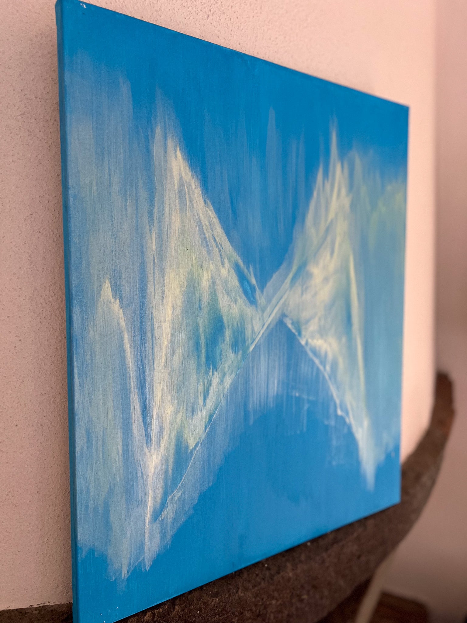 In this acrylic embrace, I've shaped a pass not just through mountains but through the soul. Abstract forms converge in a dance of metaphysical energy and minimalism, summoning the tranquility of azure skies and the vitality of earth's grandeur. This piece is a gateway to introspection, an invitation to the viewer to experience the serenity and majesty that will emanate into their space.
