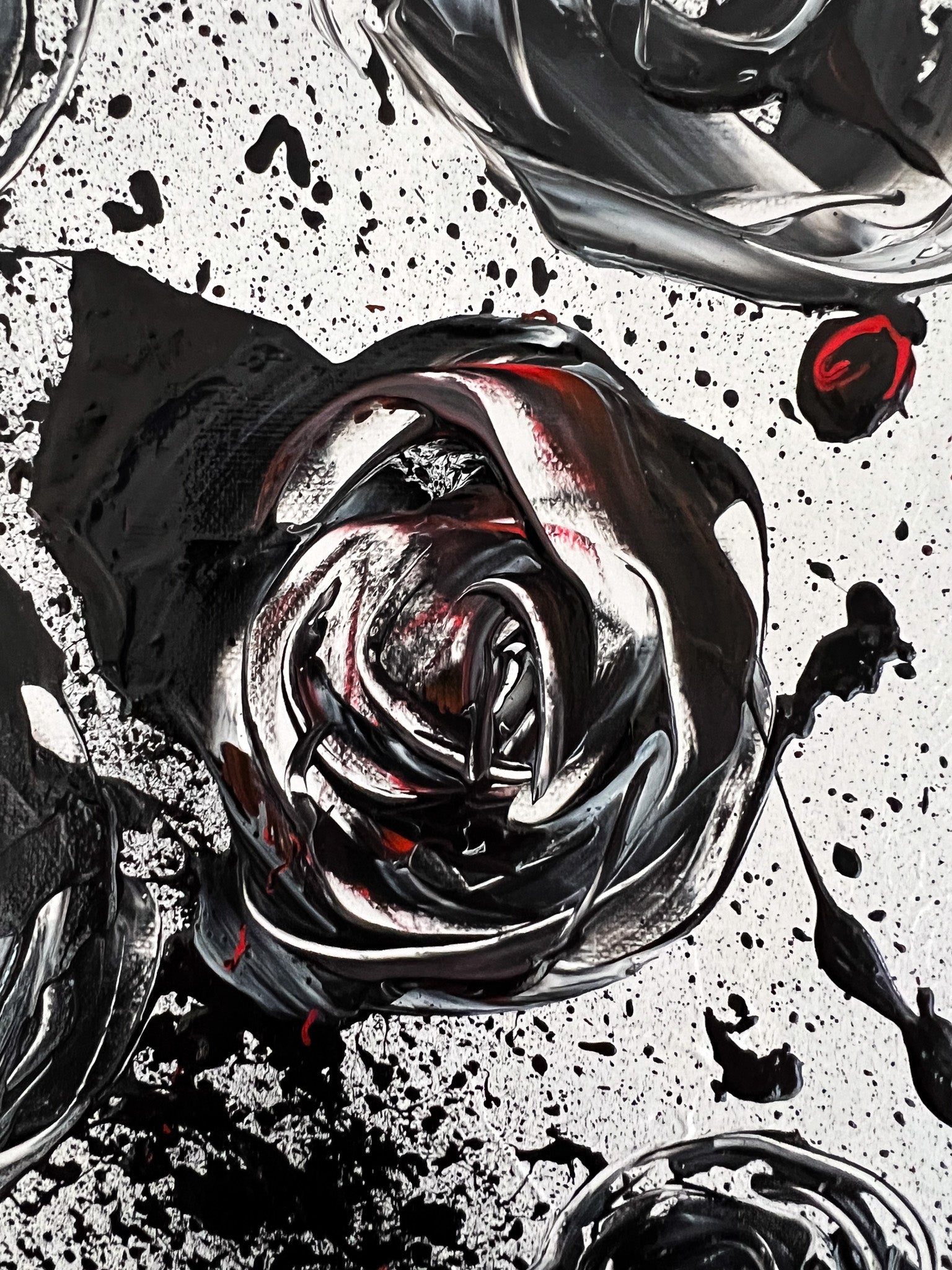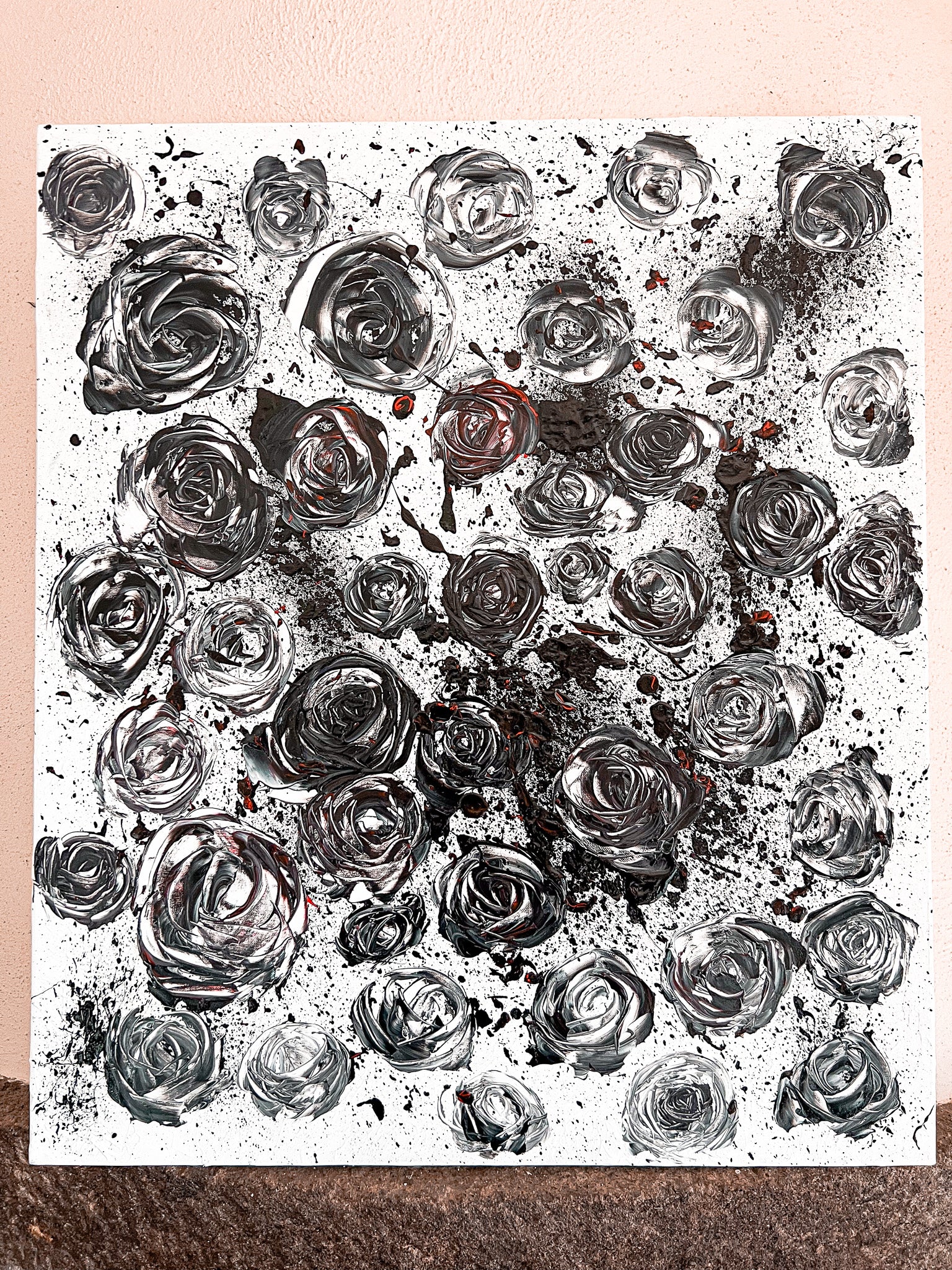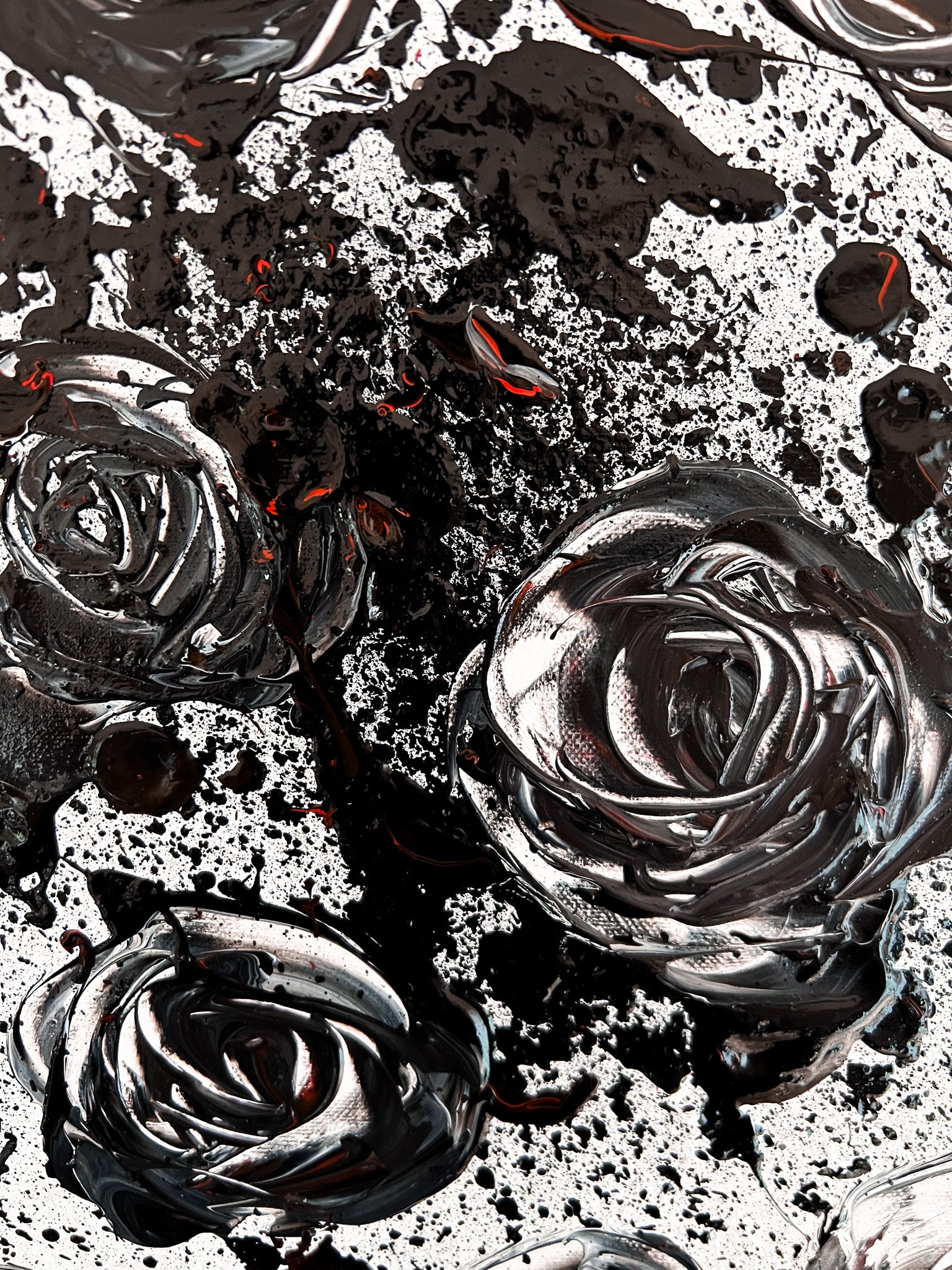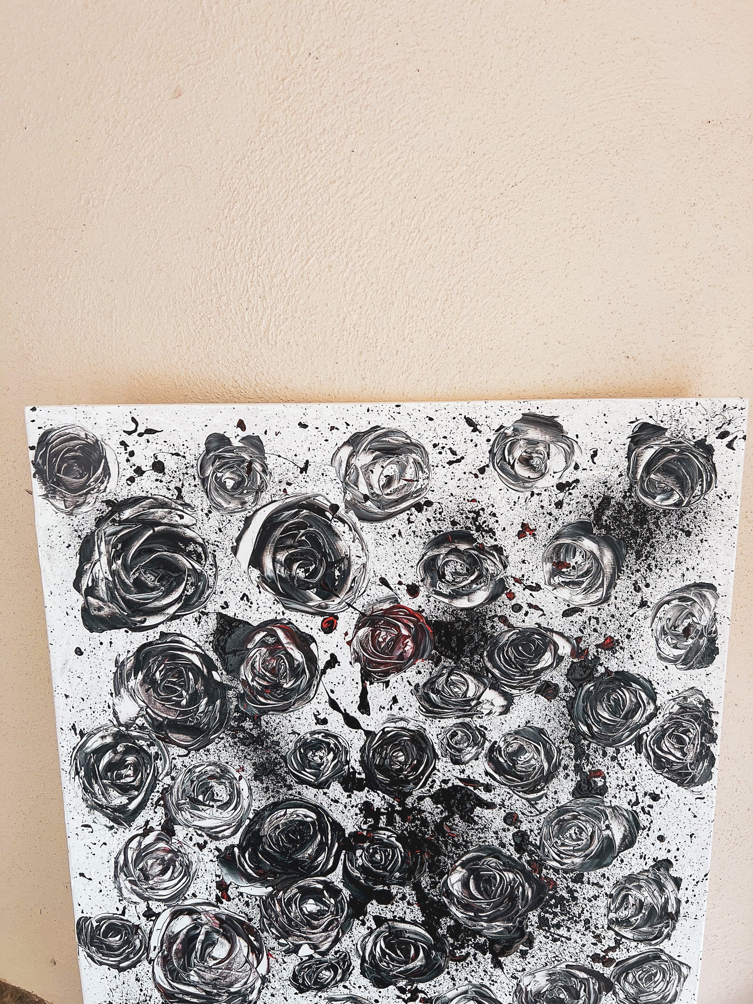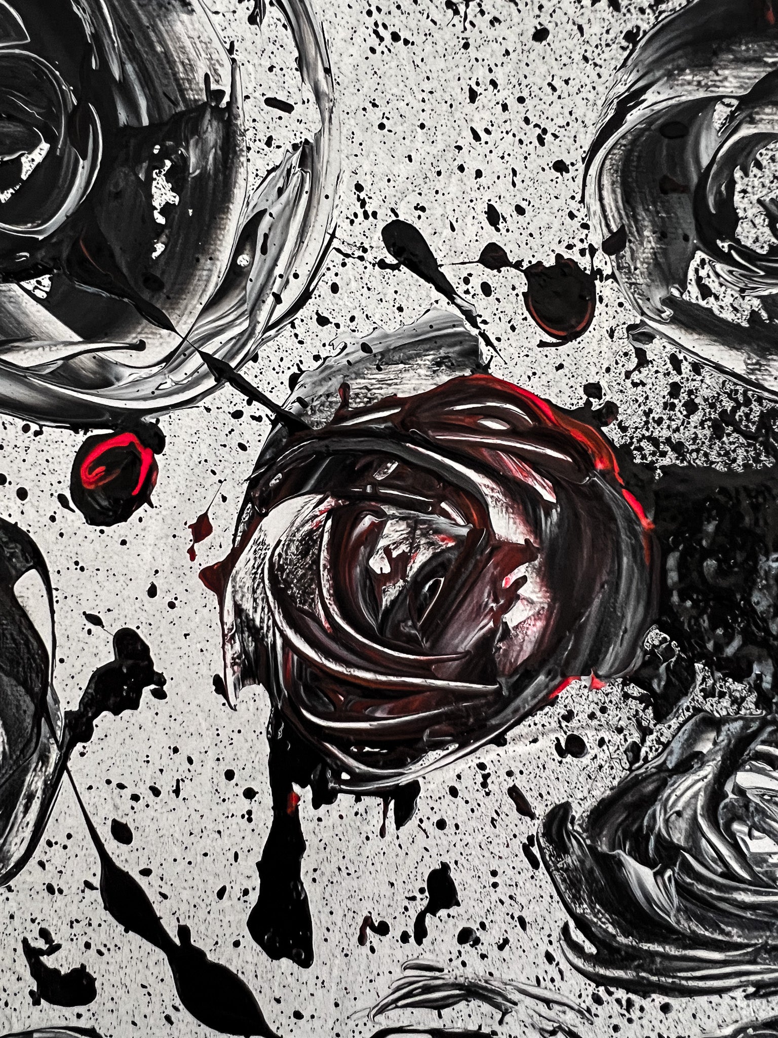 In this piece, I endeavored to capture the ephemeral beauty and transient essence of existence through swirling roses, rendered in monochromatic shades disrupted by sudden bursts of color. The use of acrylics adds a dynamic texture, while my abstract approach invites viewers to contemplate the deeper interplay of life and decay, chaos and order. This artwork, alive with energy and emotion, might bring a thought-provoking yet harmonious presence to your home, continually inspiring reflection and introspection.