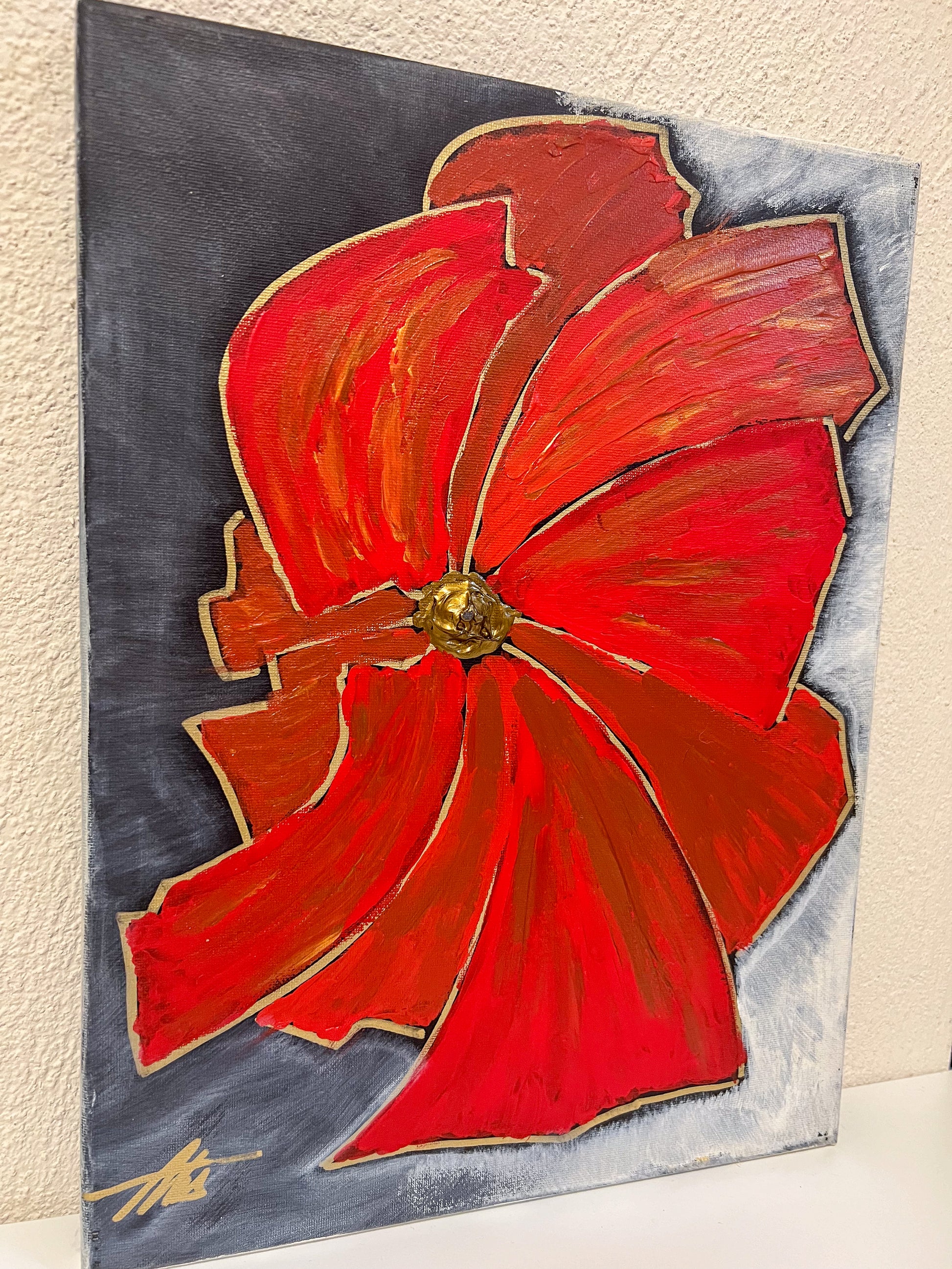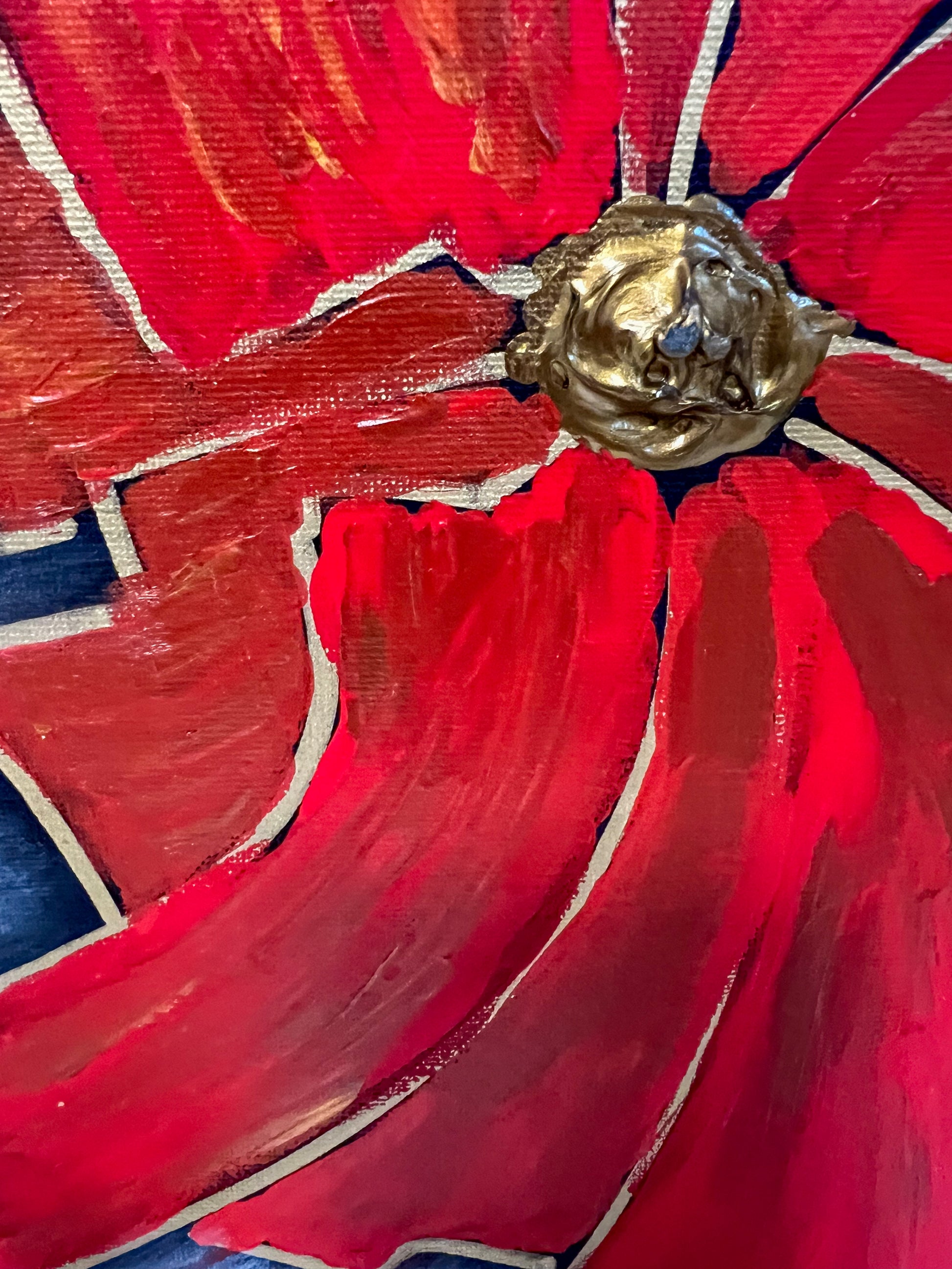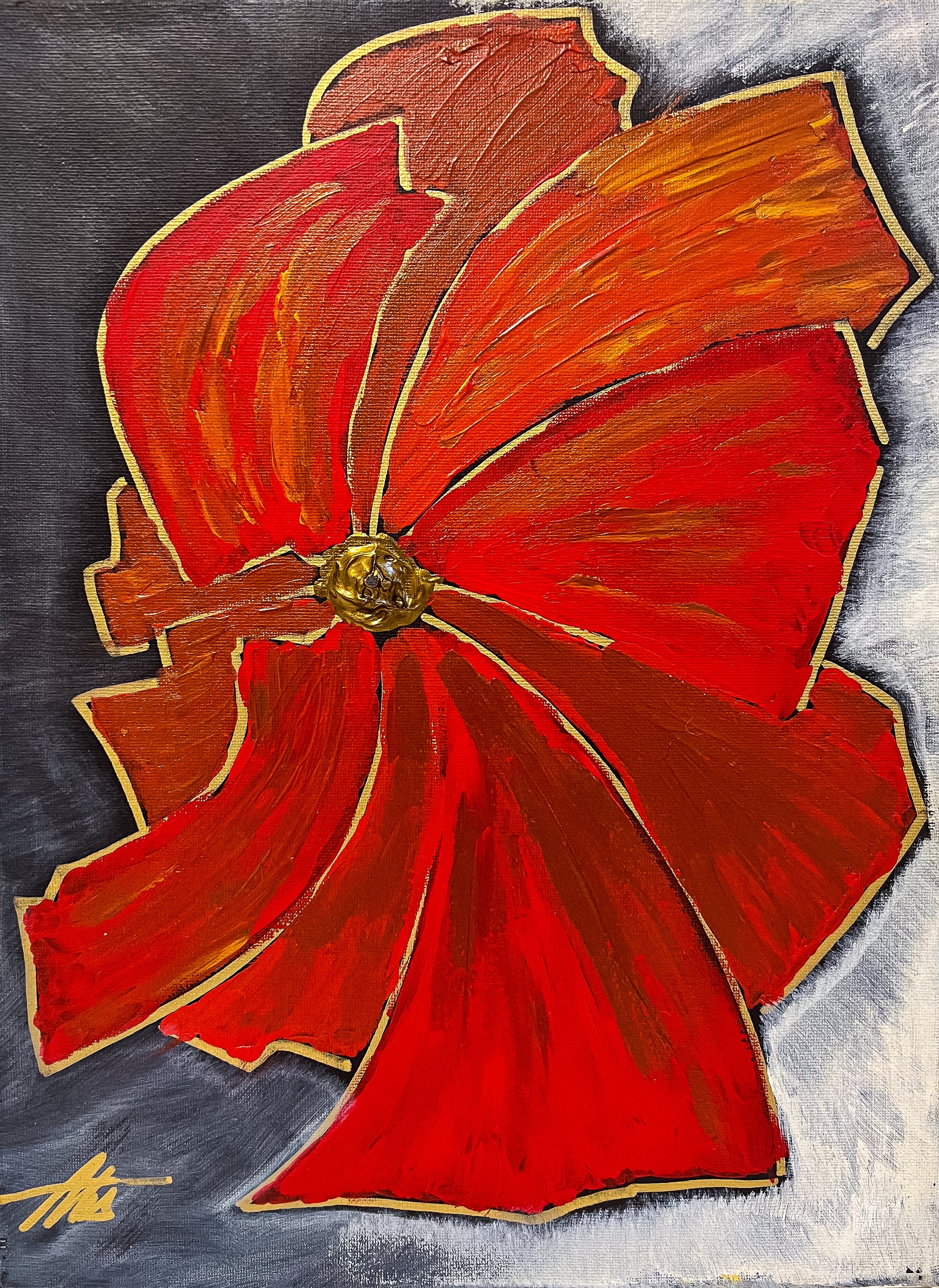 In this acrylic painting, I've embraced the harmony of cubism and oriental art, presenting a bold, geometric interpretation of nature. The stark, minimalistic petals burst with vivacity, encapsulating a fiery spirit and resilience. As I created this piece, I was consumed by the flower's simple elegance and its profound strength, crafting a focal point that breathes life and exuberance into any space it graces.