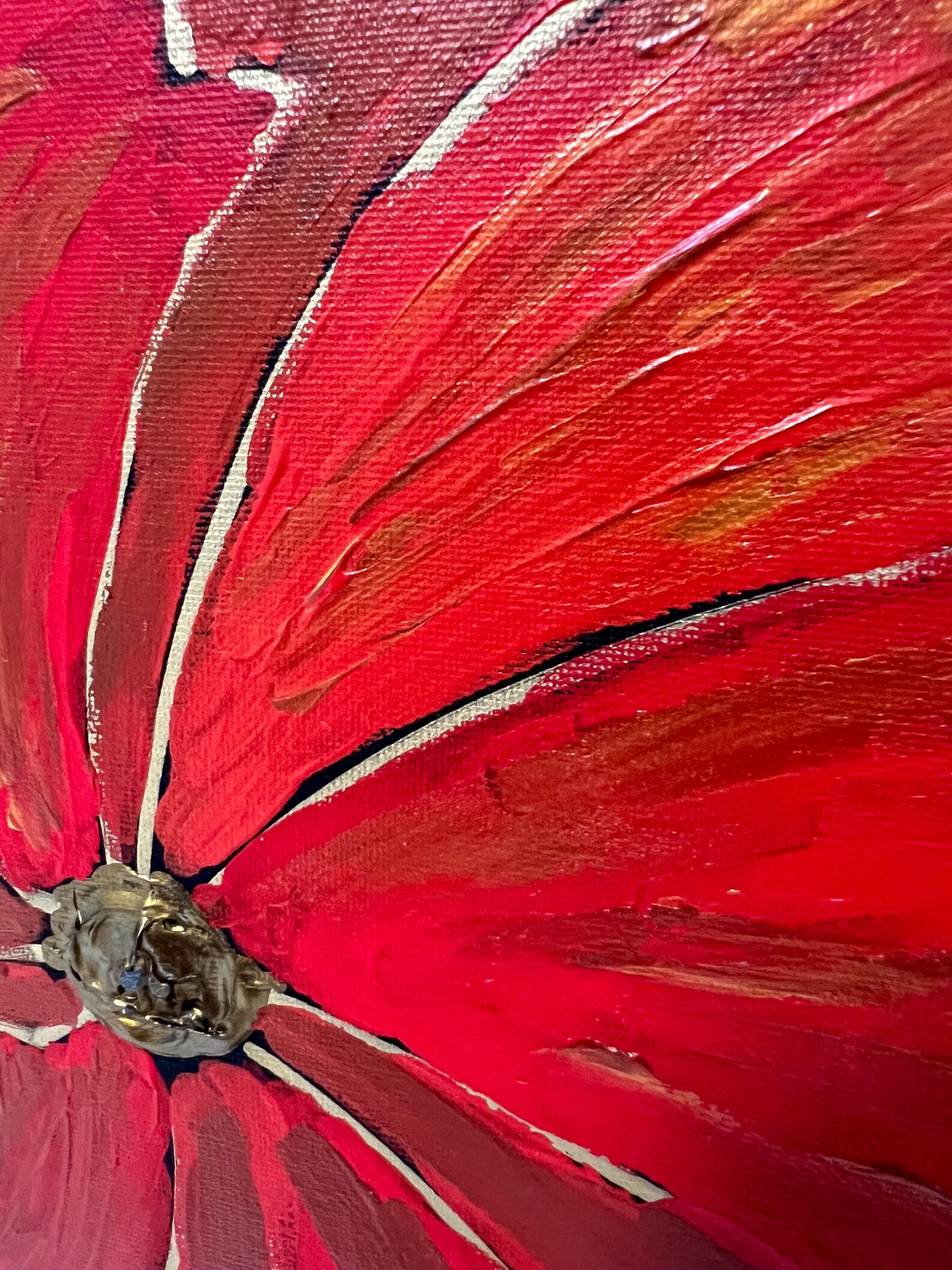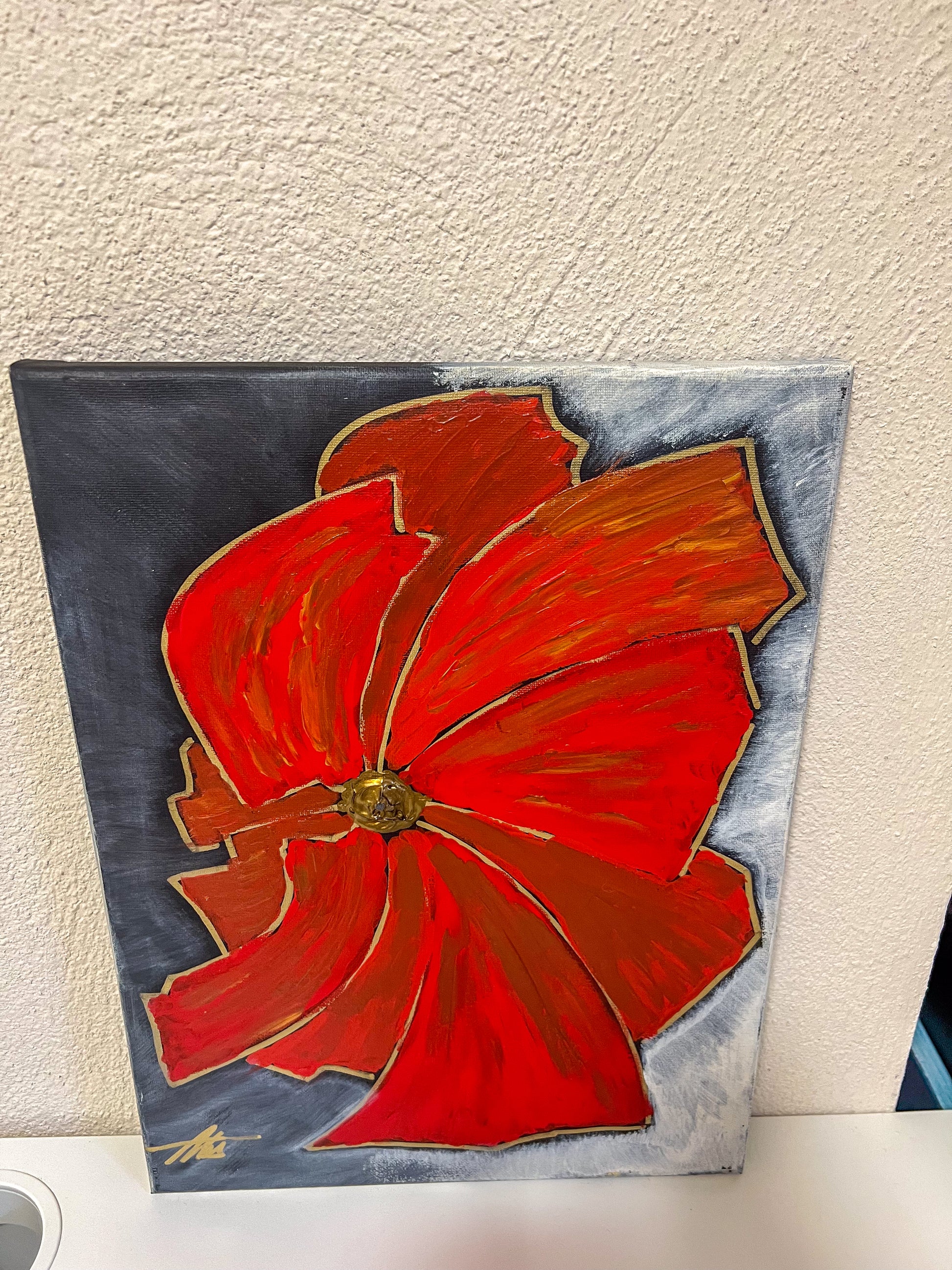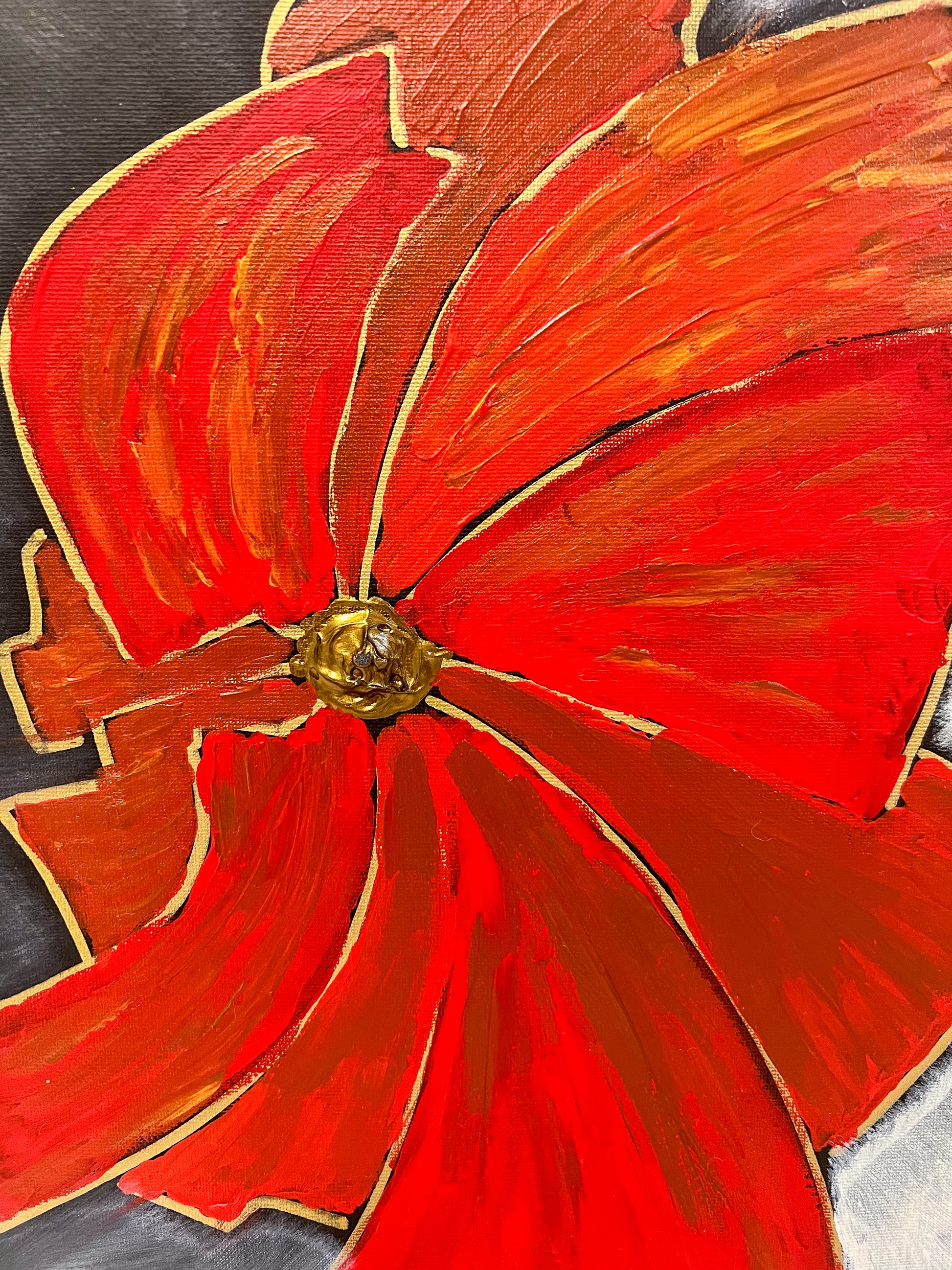 In this acrylic painting, I've embraced the harmony of cubism and oriental art, presenting a bold, geometric interpretation of nature. The stark, minimalistic petals burst with vivacity, encapsulating a fiery spirit and resilience. As I created this piece, I was consumed by the flower's simple elegance and its profound strength, crafting a focal point that breathes life and exuberance into any space it graces.