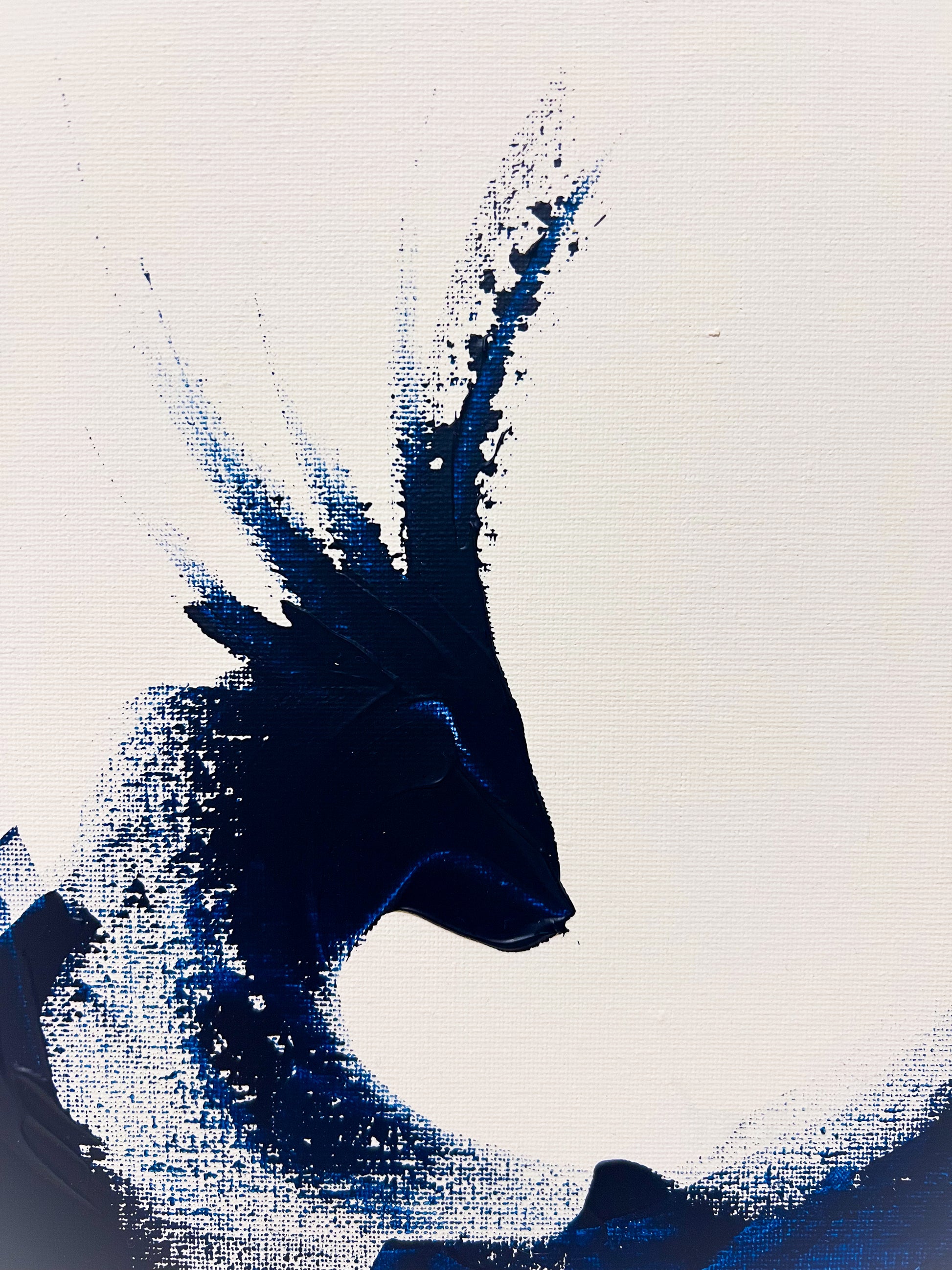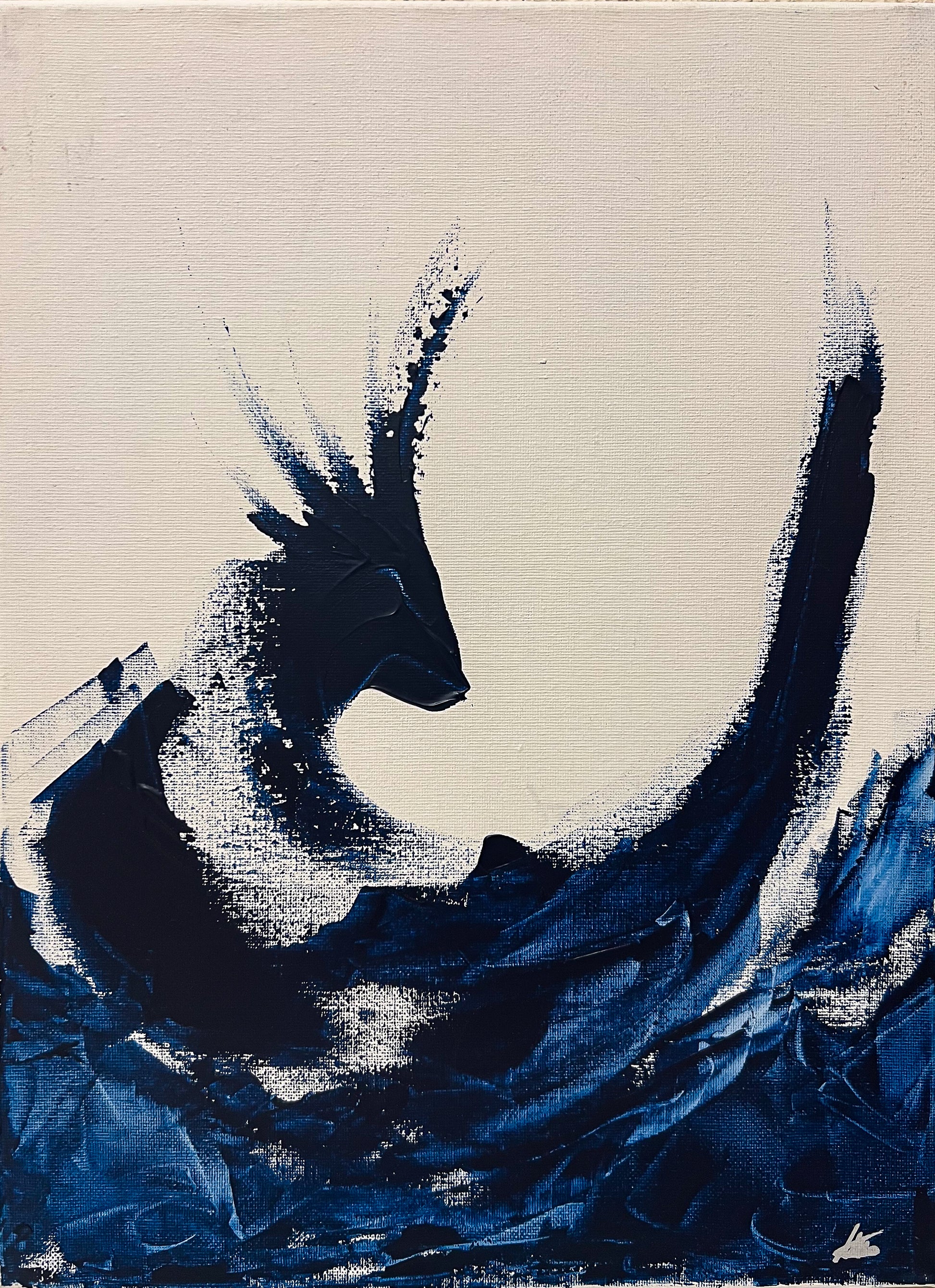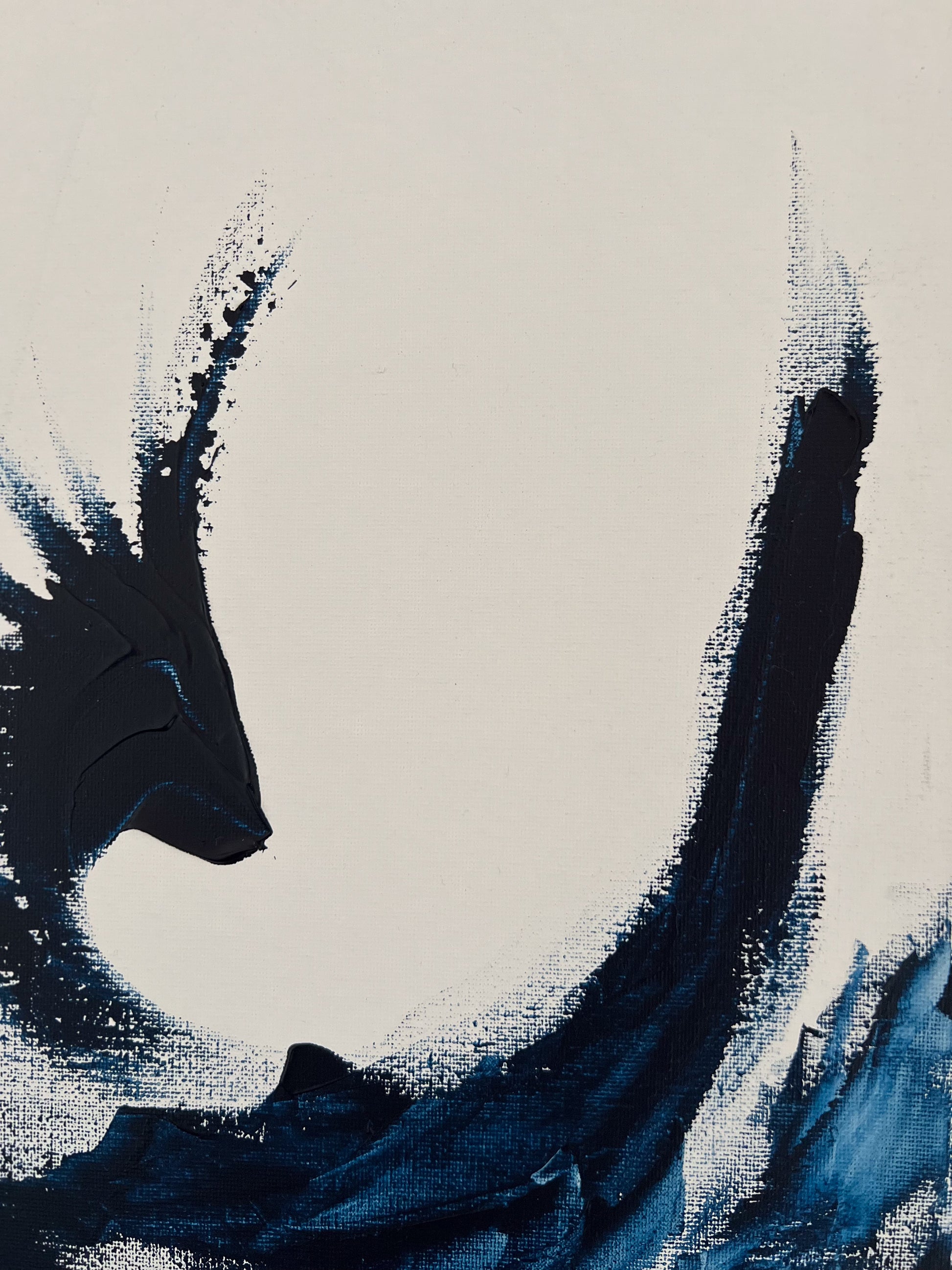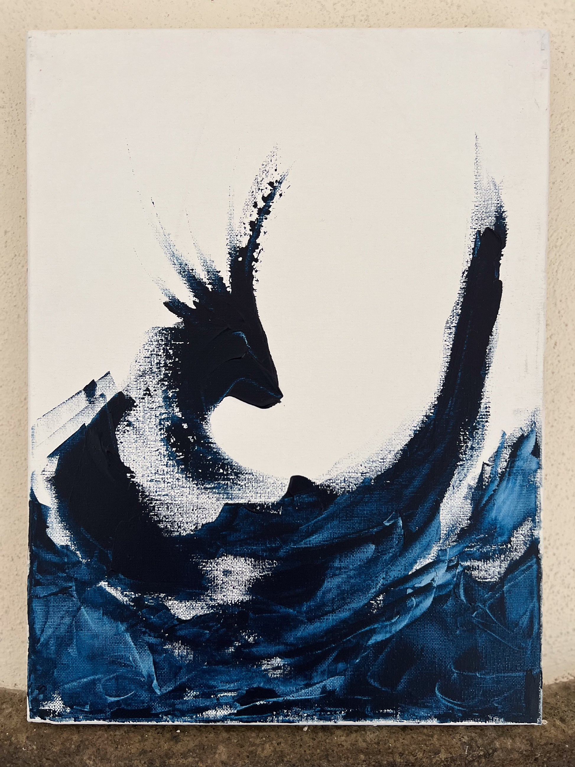 In this acrylic creation, I've channelled the depths of mystery and the unknown, conjuring an abstract vision that speaks to the sublime nature of the world beneath the waves. The stark contrast between the vast white and the rich blue hues evokes a sense of transcendence and introspection. Through minimalistic and symbolic strokes, I invite onlookers to dive into their imagination, to behold what might lurk in the metaphysical sea—an essence both majestic and formidable, bringing an electrifying energy into your space.