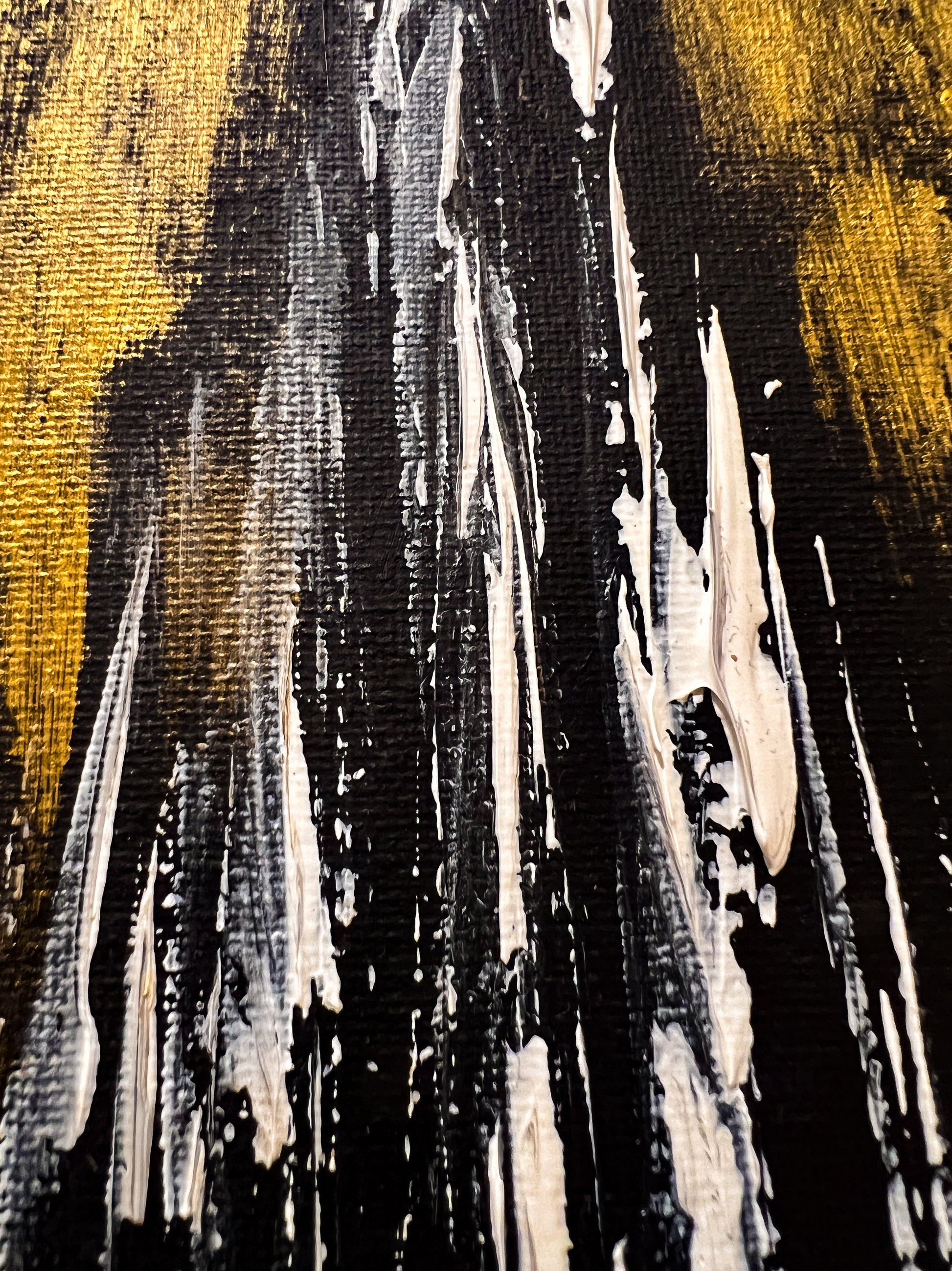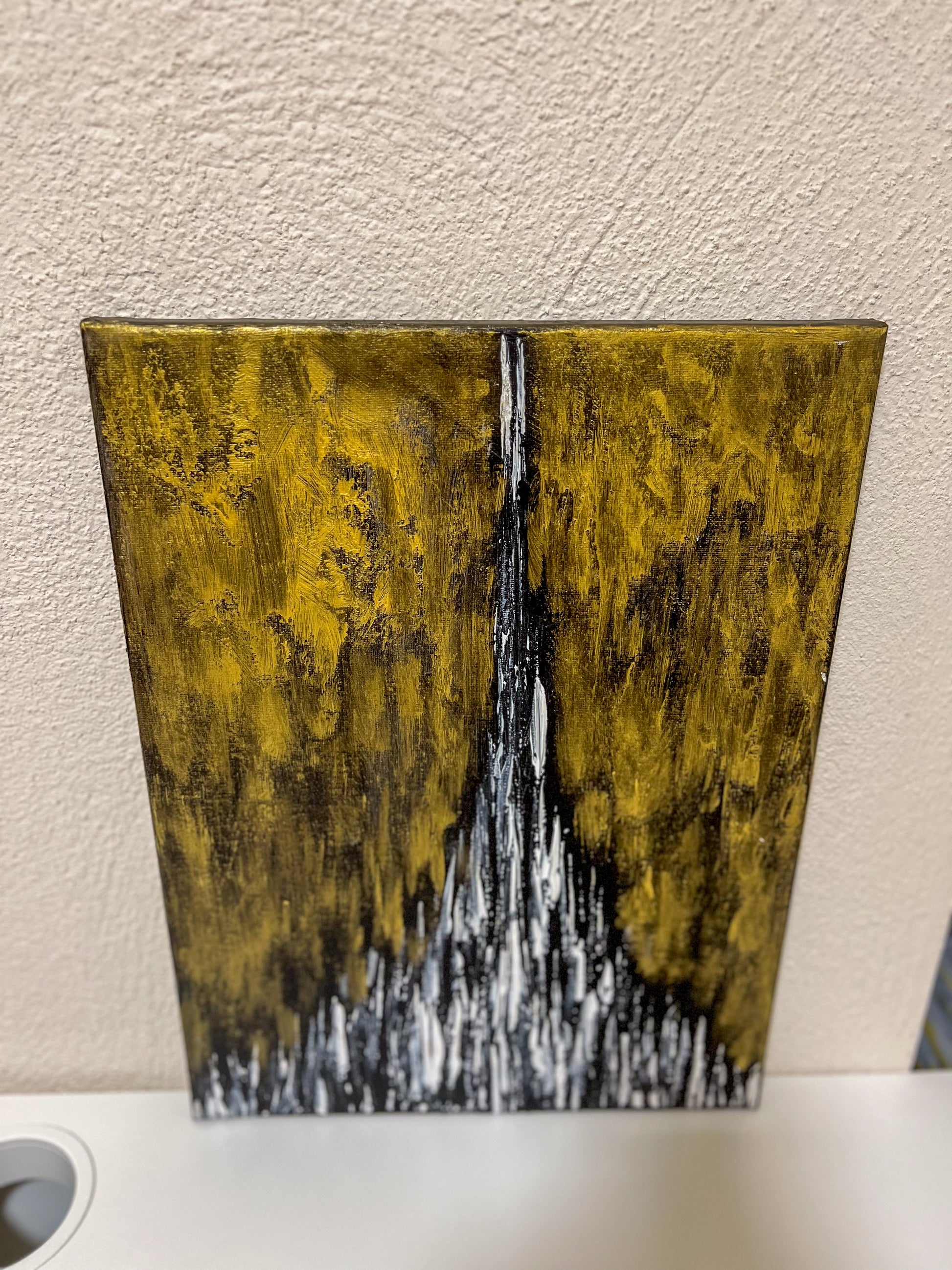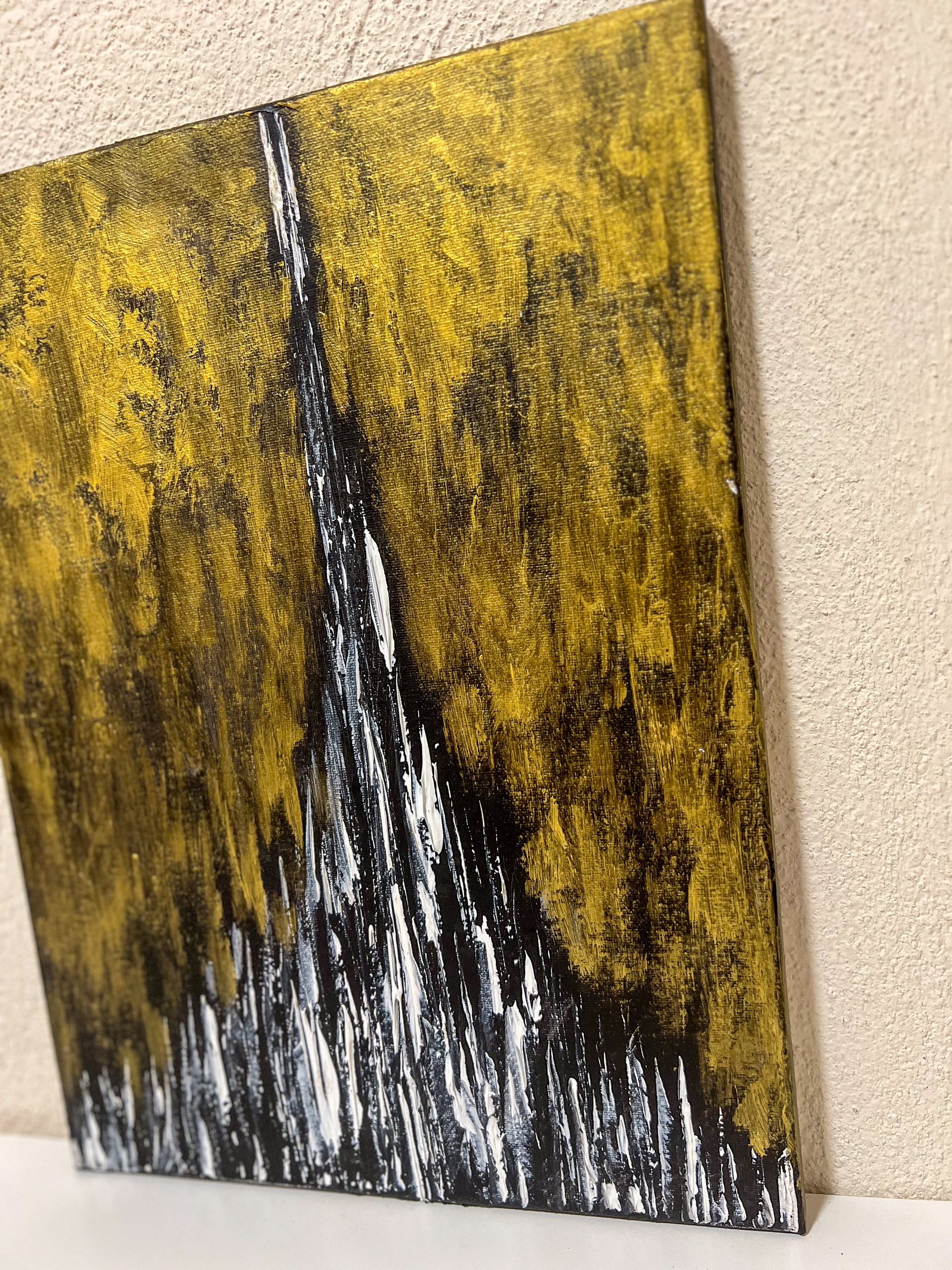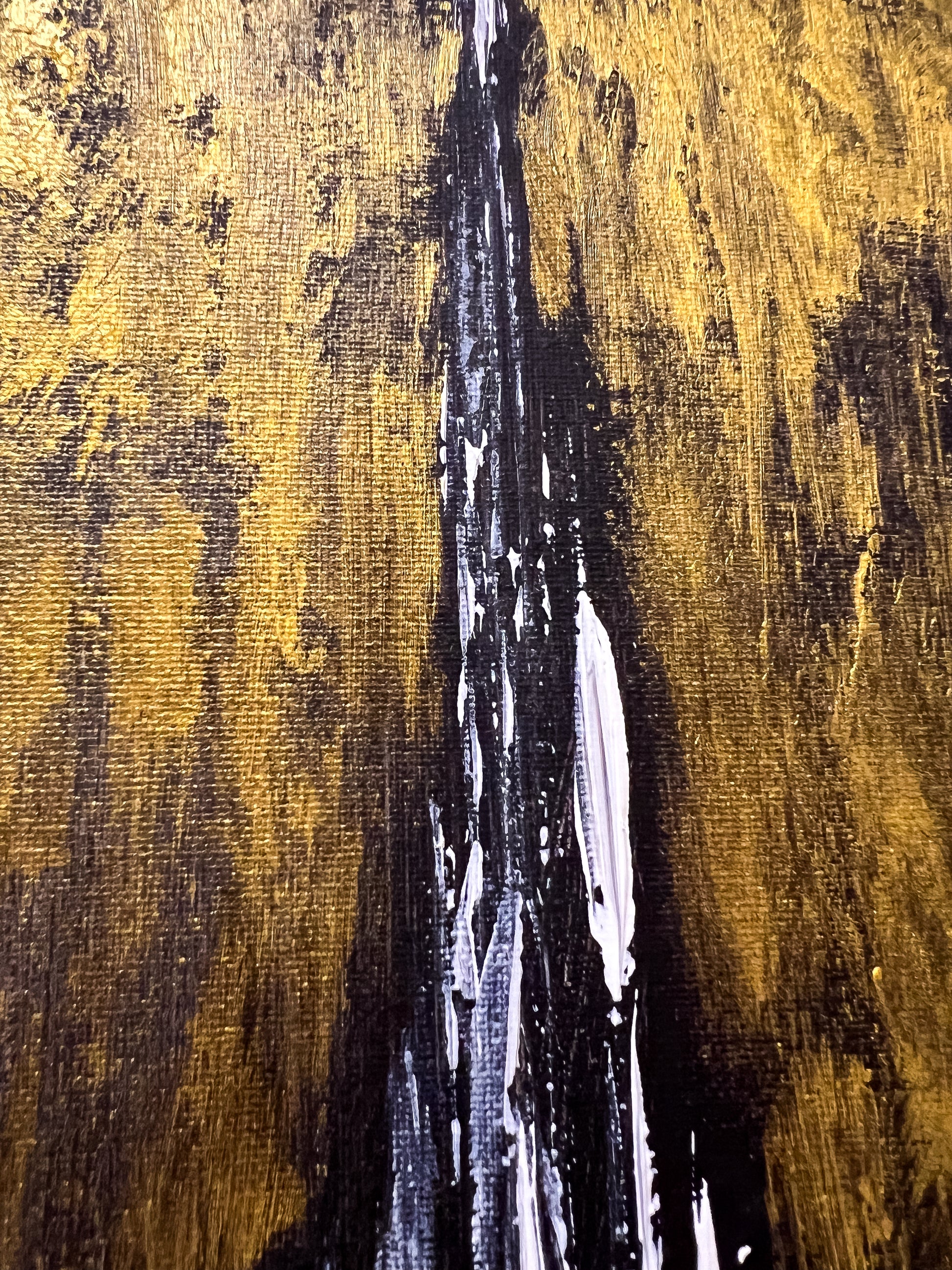 In creating this piece, I was driven by the contrast between aspirations and foundations. The striking ascent amidst the golden backdrop symbolizes the relentless pursuit of ambition. My minimalist approach aims to capture the raw emotion behind human endeavors, rendered in acrylic for its bold and emotive possibilities. This work invites contemplation on our own quests, and will infuse any space with the energy of striving and reflection.